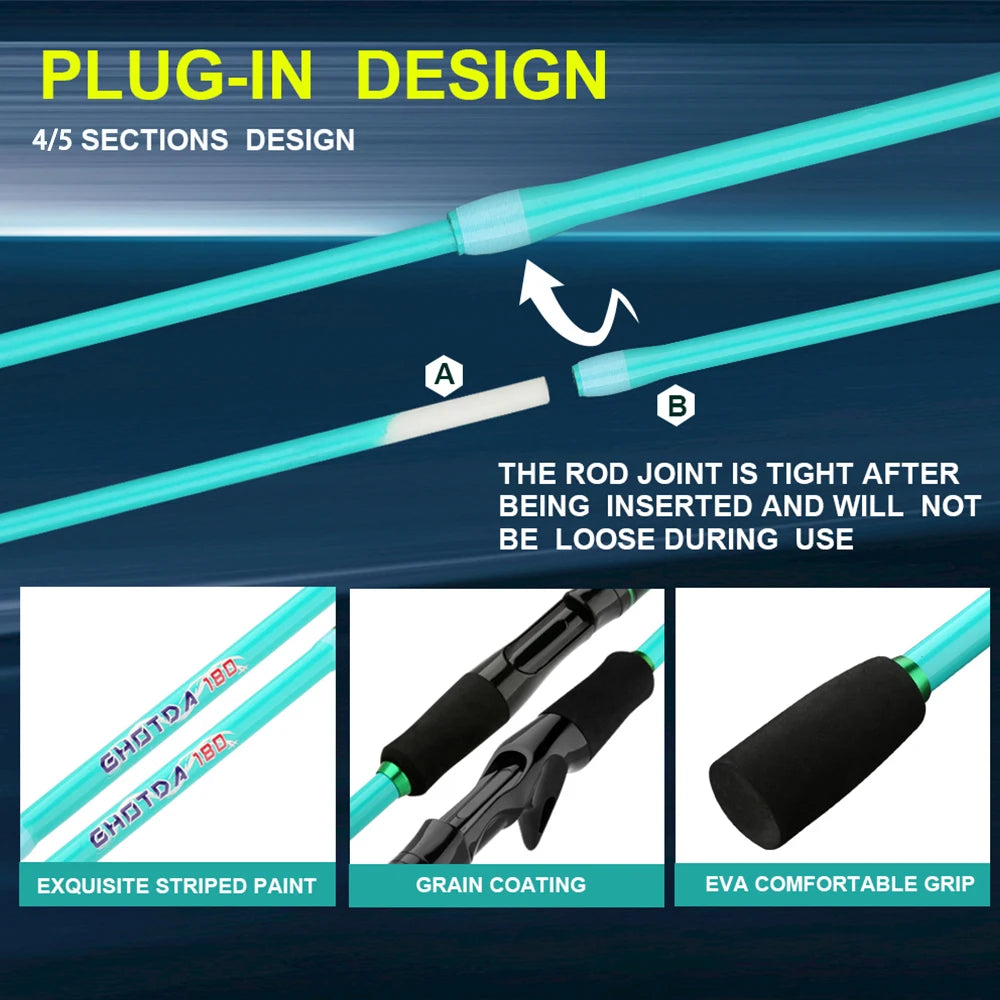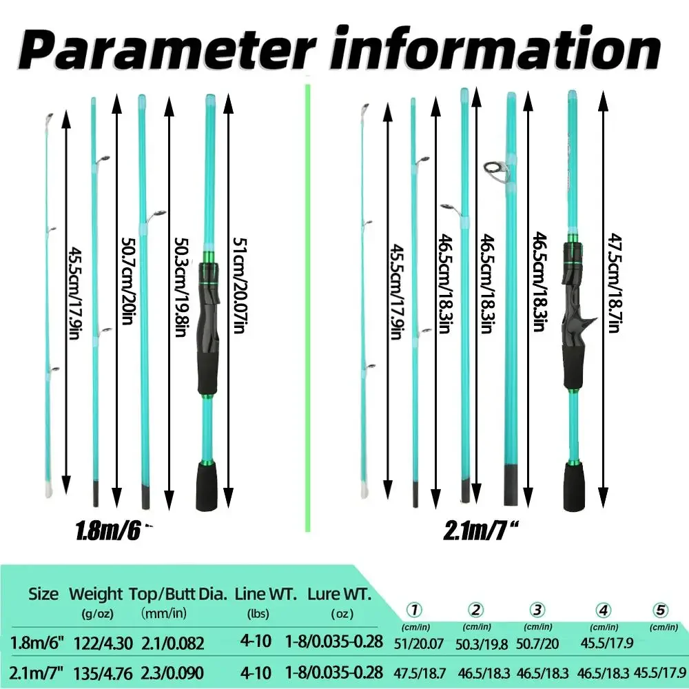 1.8 2.1m Lure Fishing Rod Baitcasting Reel Combo 4/5 Sections Carbon Spinning Casting Lure Rod High Speed 7.2:1 Fishing Reel Sets Pesca