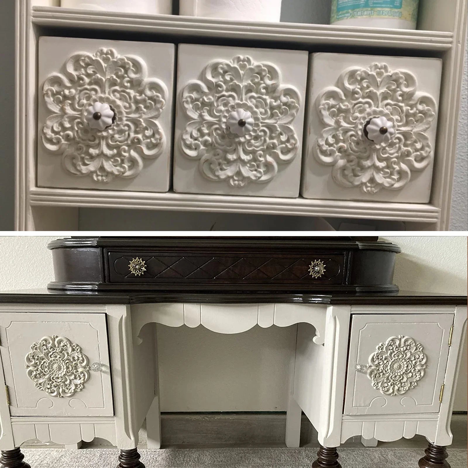 10cm Round Flower Wood Carving Decal Unpainted Disc Onlay Decor Door Furniture Symmetrical European Court Exquisite Single-sided