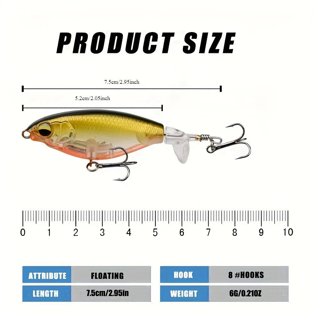 1Pcs Topwater Top Water Fishing Lure 6g/10g Trolling Catfish Artificial Hard Bait with Soft Rotating Tail Fishing Tackle