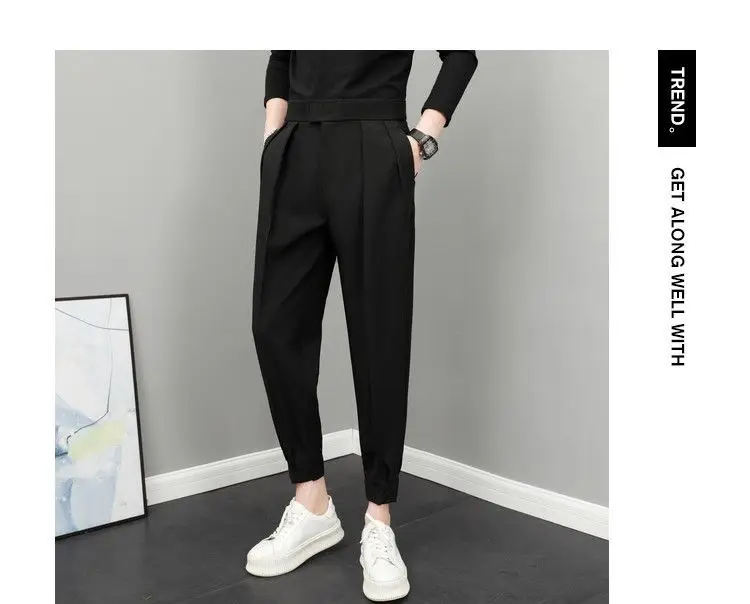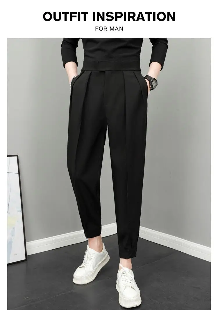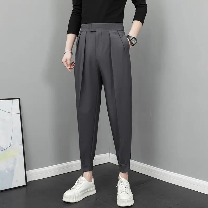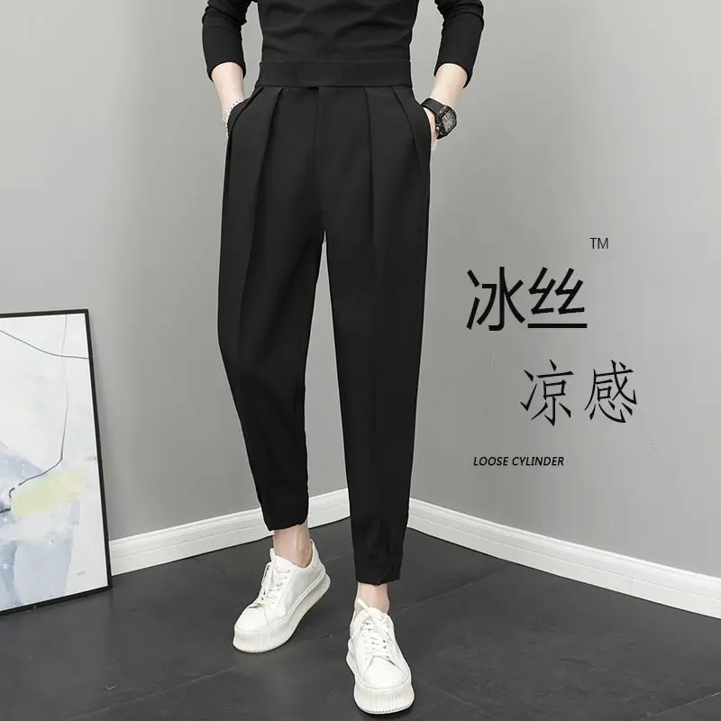 2023 Men's Clothing New Fashion Loose Man Solid Color Pleated Temperament High Waist Handsome Thin Spring Summer Casual Pants