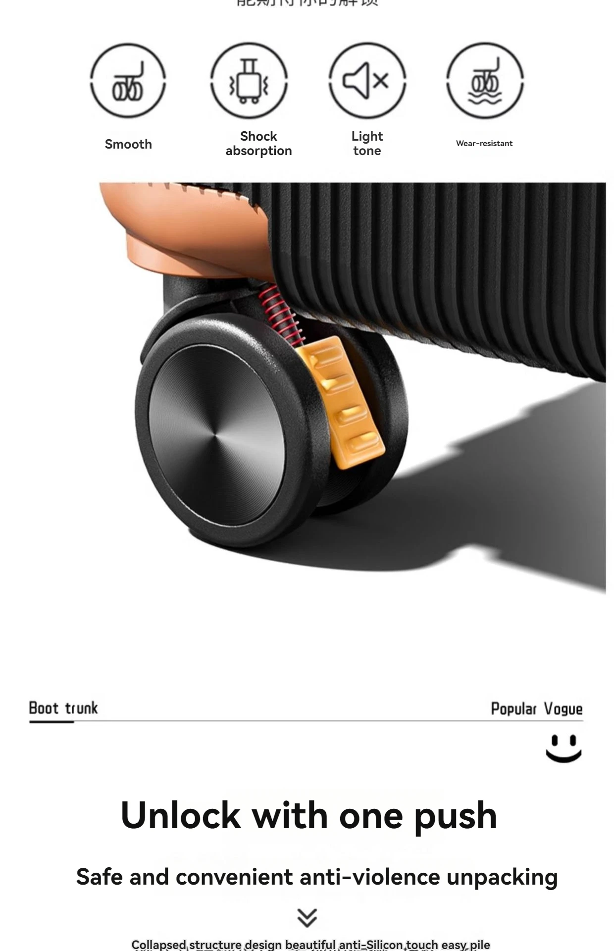 2025 new luggage with wide pull rod, shock-absorbing brake, large capacity travel case, 20 inch boarding case, password box