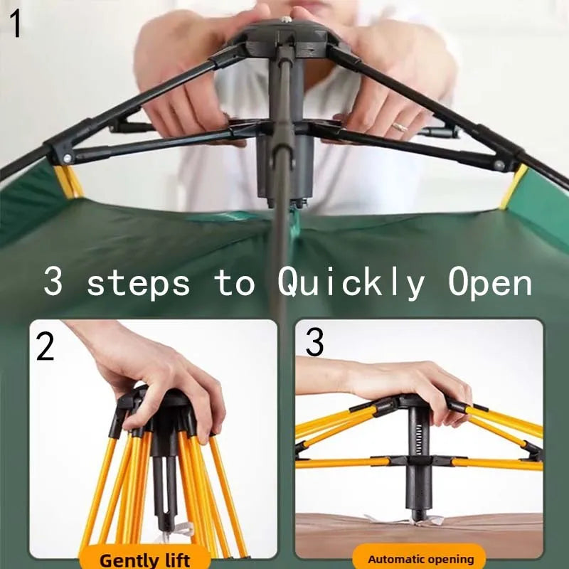 4 Person Ventilated Camping Tent with USB Air Fan Mesh Door Automatic Setup Easy Pop Up Family Tent for Outdoor Hiking Traveling
