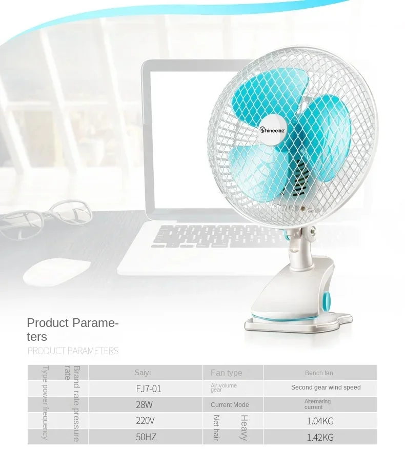 7 Inch Electric Fan Bedside Clip Wall Fan Desktop Student Ventilador Dormitory Table Air Conditioner Household Office Air Cooler