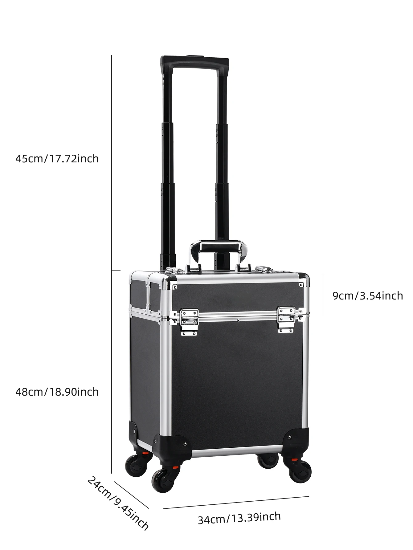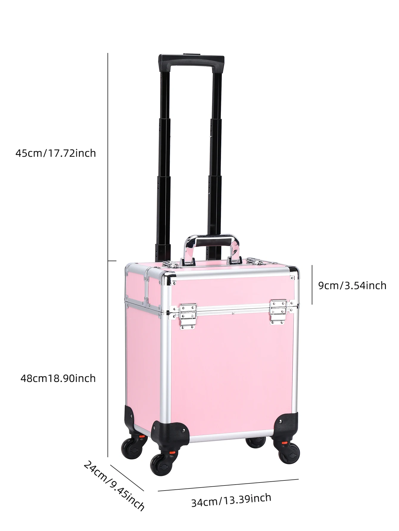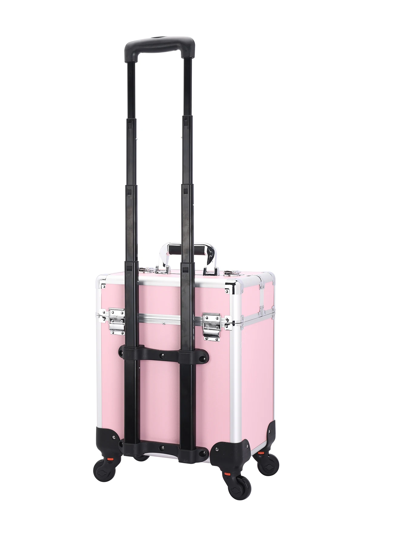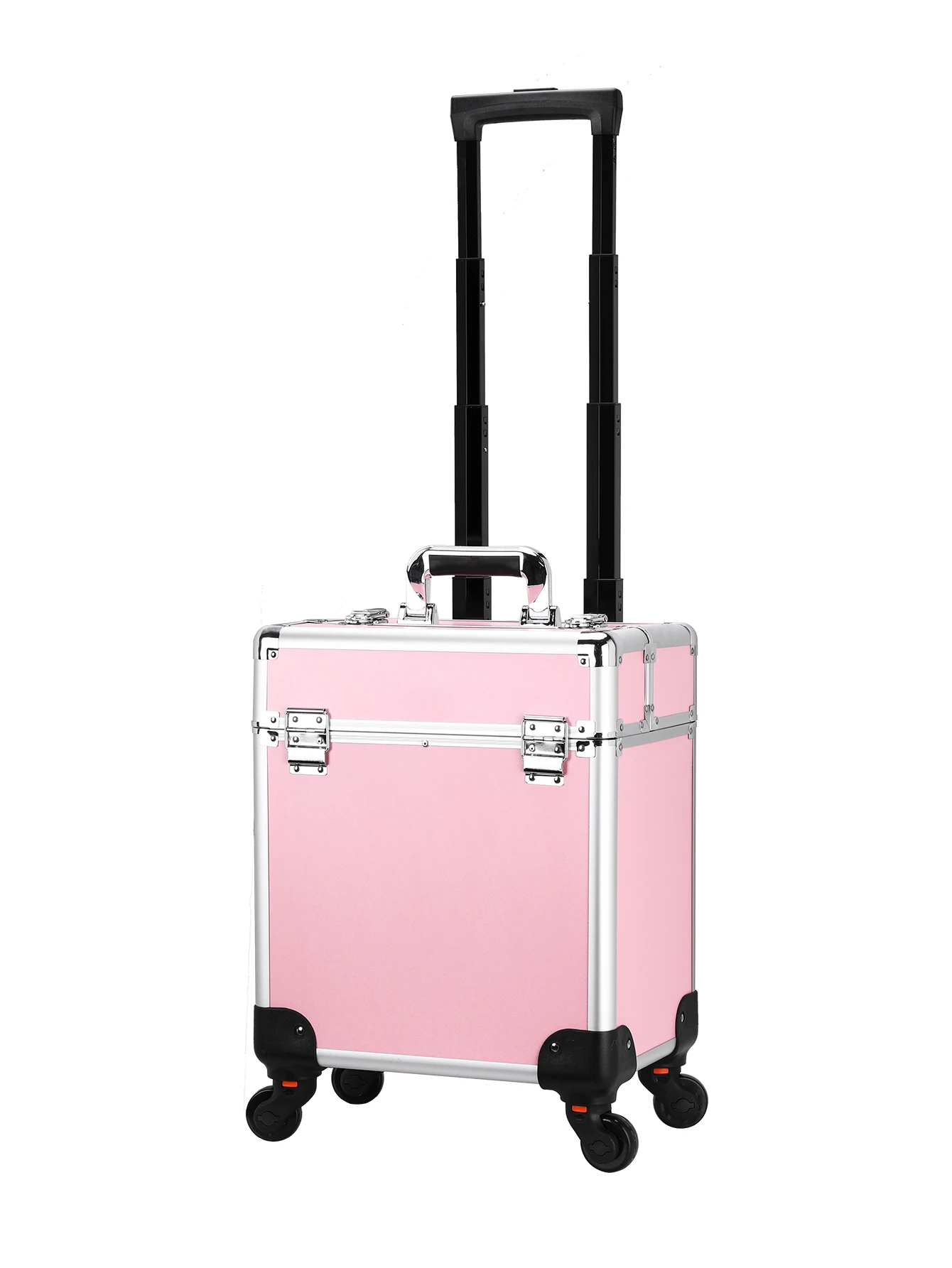 Aluminum Rolling Makeup Case Lockable Cosmetic Salon Organizer Trolley Case With Trays