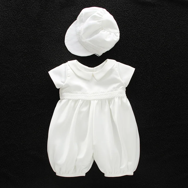 baby boy clothes white baptism baby romper set with hat turndown collar newborn first christmas boy birthday clothing 3-24M