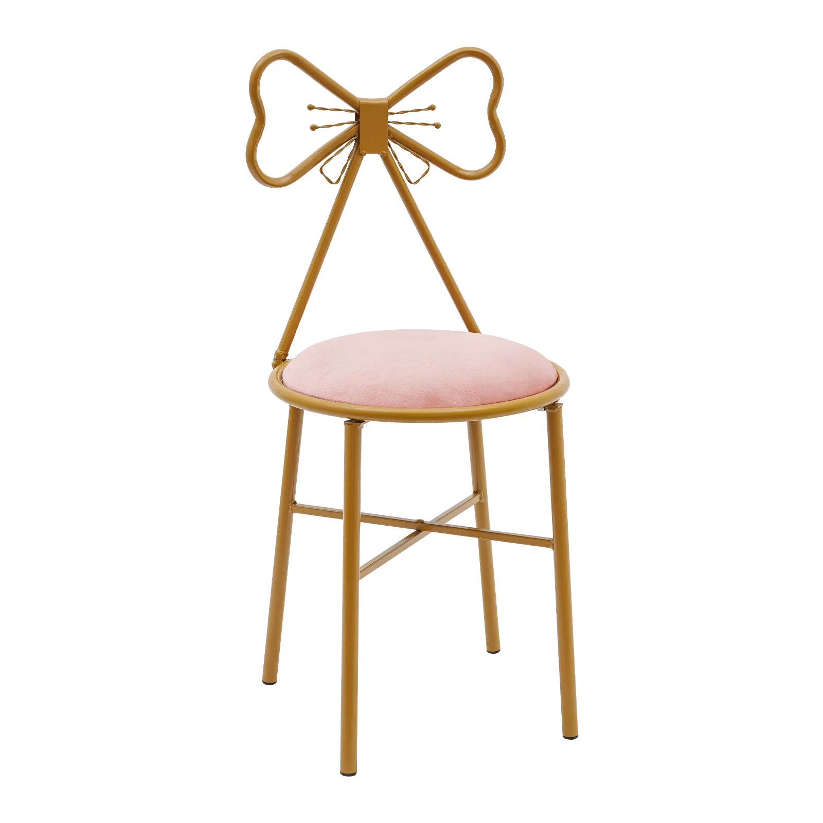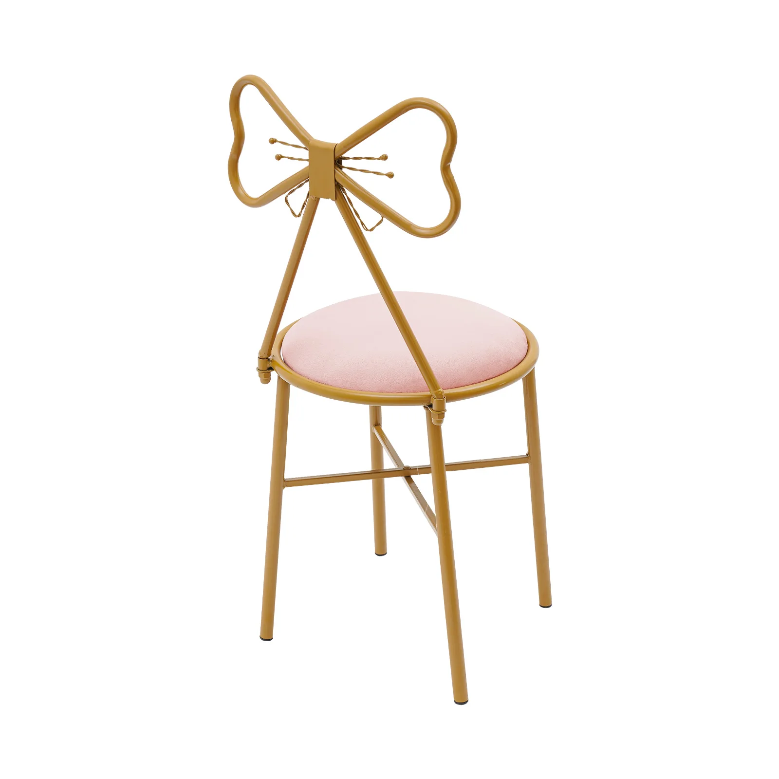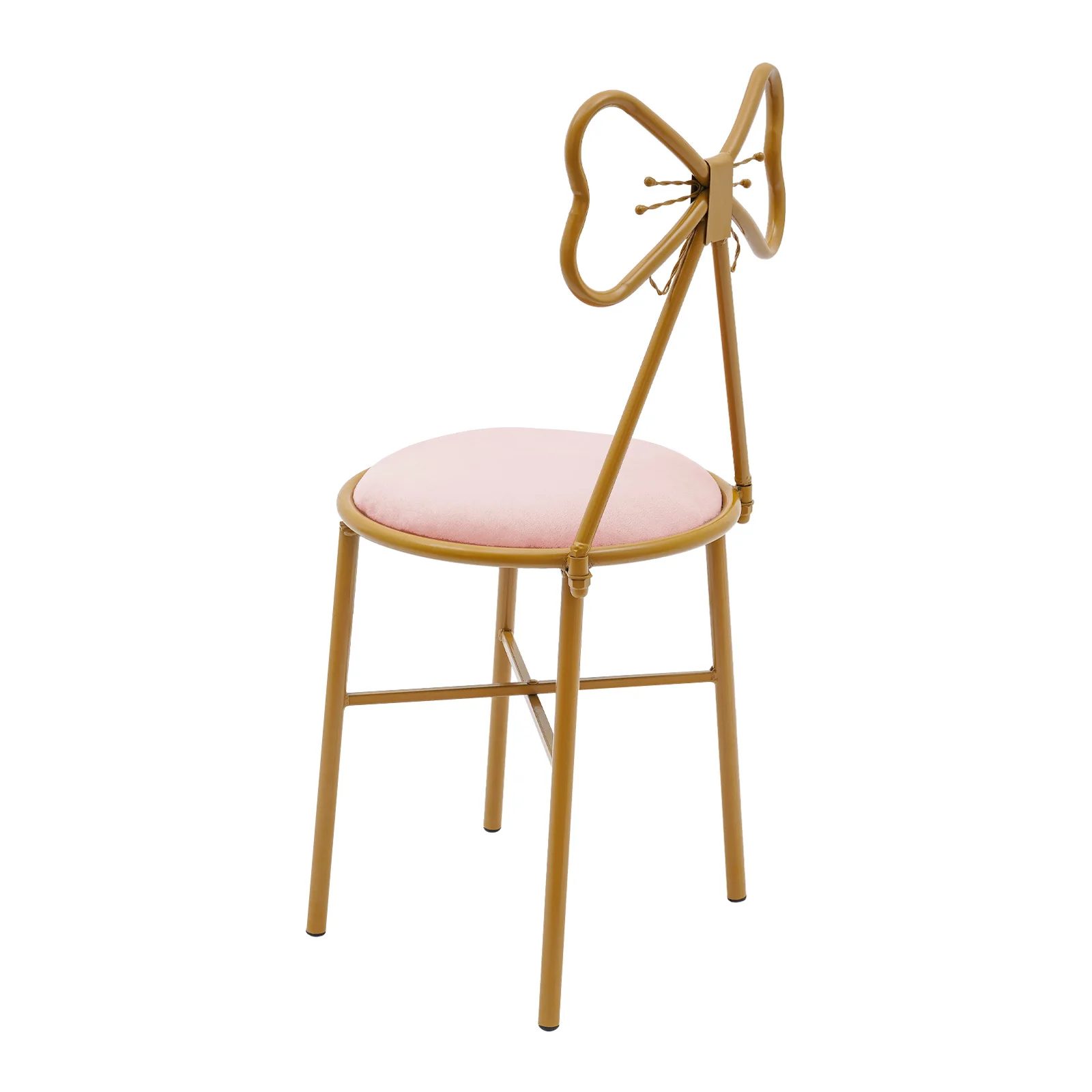 Light Pink Butterfly Bow Tie Vanity Chair Modern Vanity Stool Velvet Cushion Makeup Chair Gold Metal Frame Butterfly Backrest Chair Dining Chair