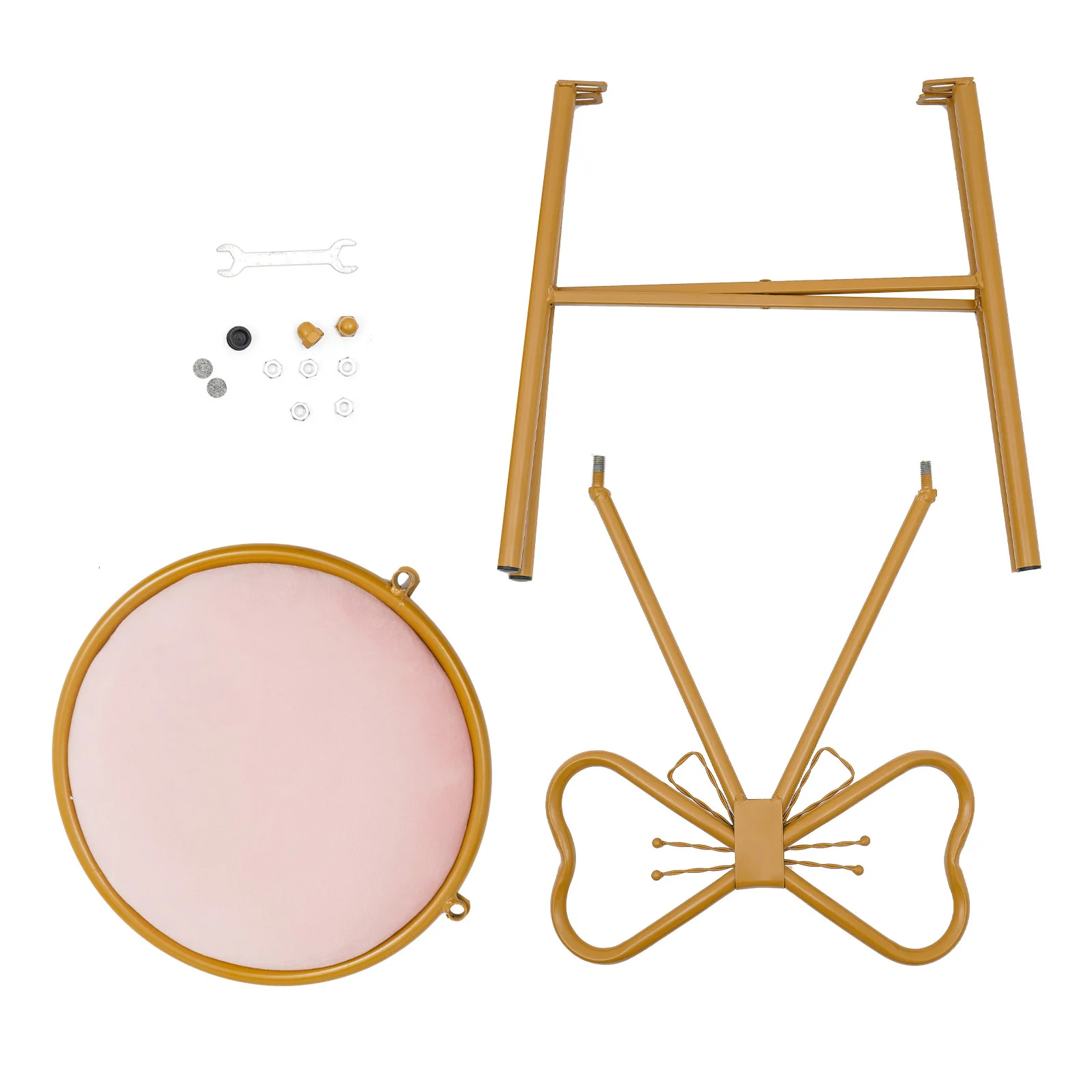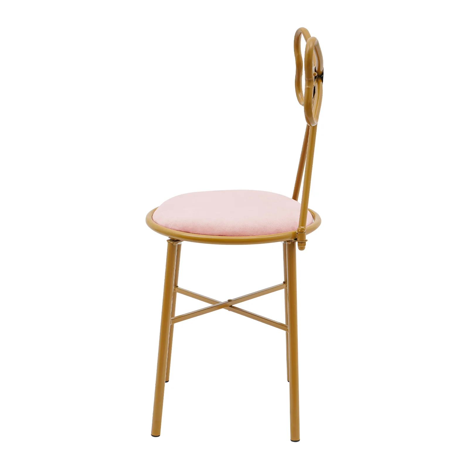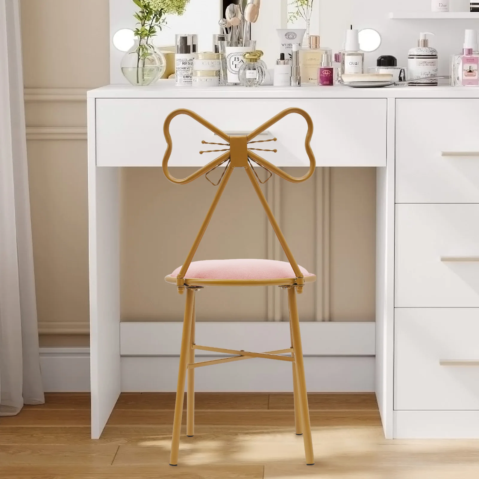 Light Pink Butterfly Bow Tie Vanity Chair Modern Vanity Stool Velvet Cushion Makeup Chair Gold Metal Frame Butterfly Backrest Chair Dining Chair