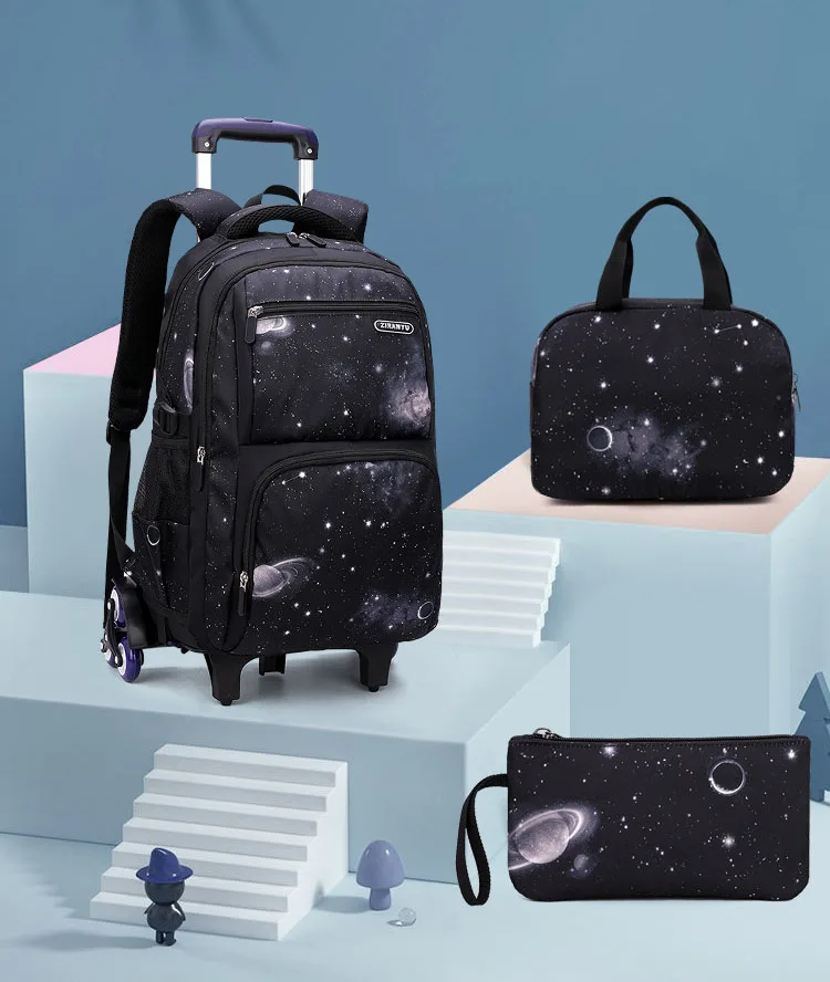 Carry On Kids' Luggage Primary Junior High School Bag Rolling Backpack for Boys Wheeled Bag with Lunch Box Trolley School Bags