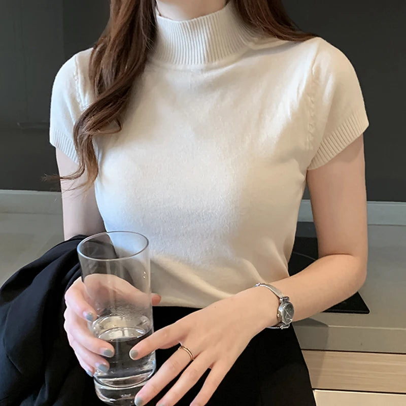 Casual Women Clothing Korean Knitted Women Top Blusas Mujer De Moda Spring Summer New Solid Slim Turtleneck Blouse Blusas 8622