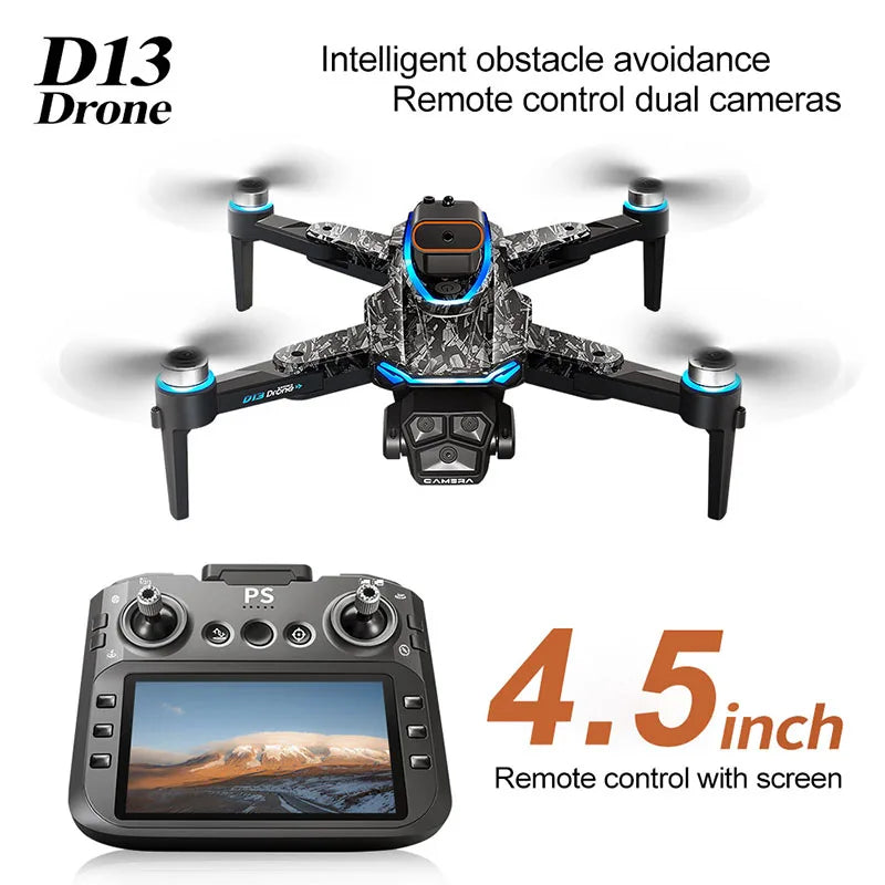 D13 Drone 4K HD with 4.5 Screen Remote & Brushless Motor, Obstacle Avoidance Optical Flow Foldable Quadcopter Aerial Photography