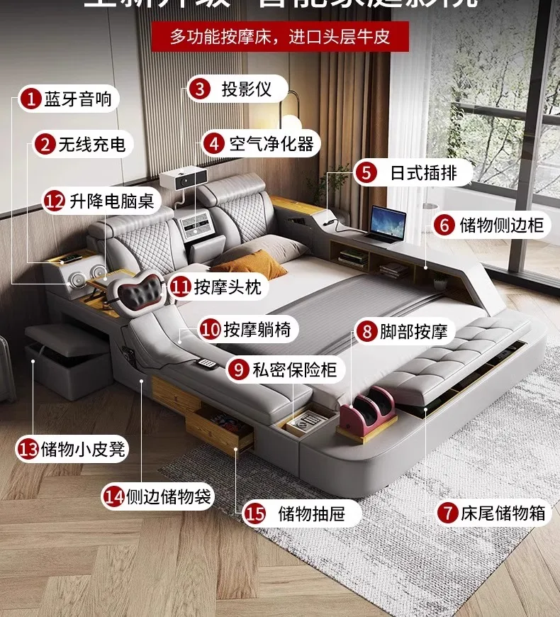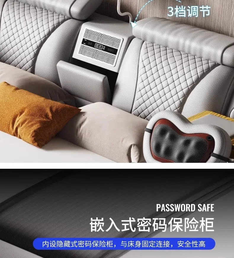 6. Embedded password safe, with hidden password safe inside, which is fixedly connected with the bed, with high security.