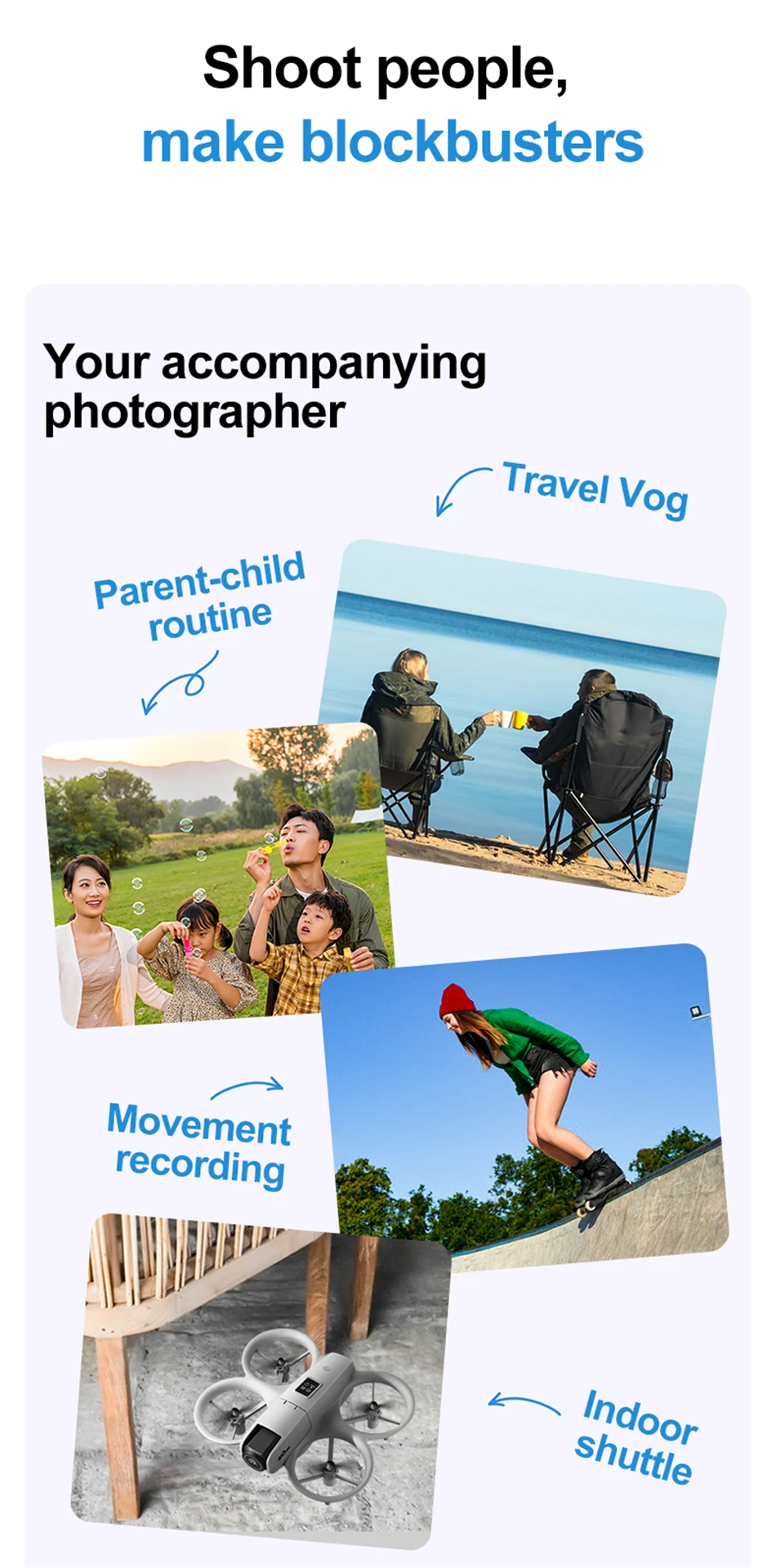 2: The drone has a fixed altitude maintenance mode function, built-in three sided sensing obstacle avoidance, electrically adjustable lens, and can achieve 180 ° upward shooting, optical flow fixed-point positioning, and stable flight.