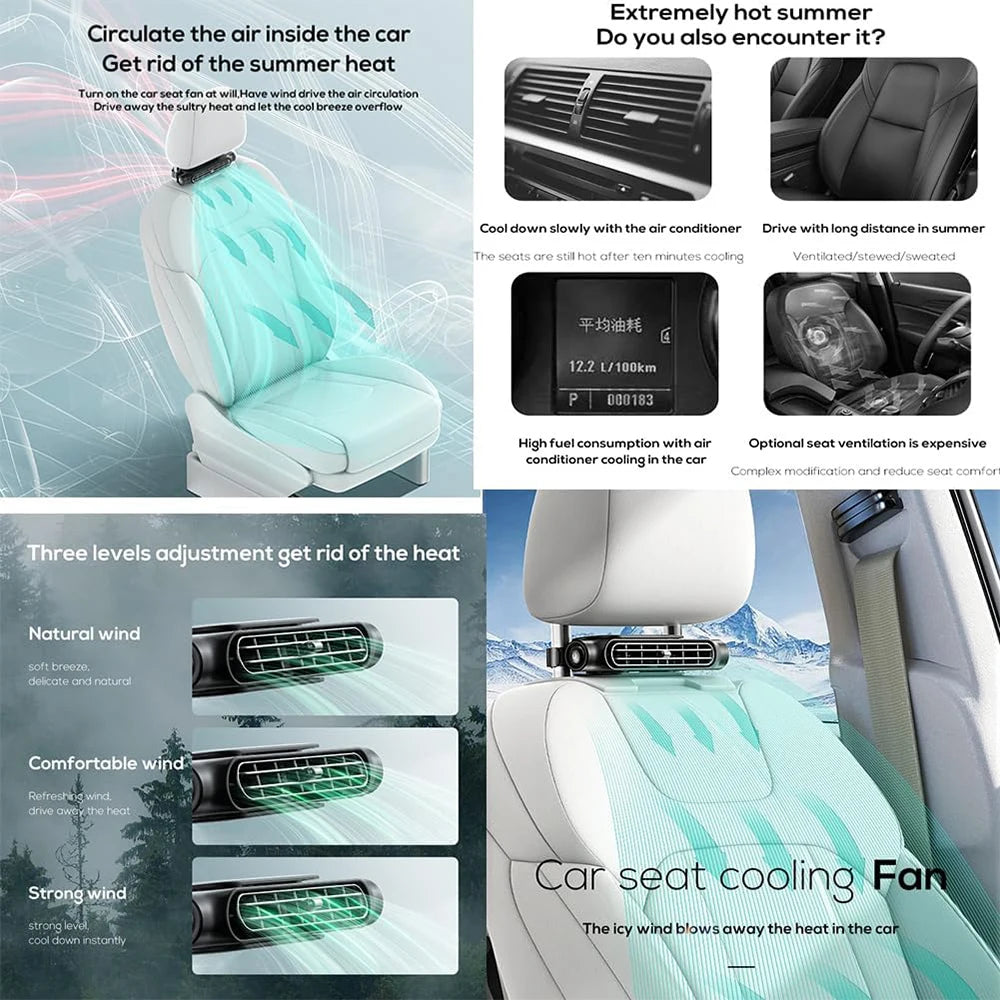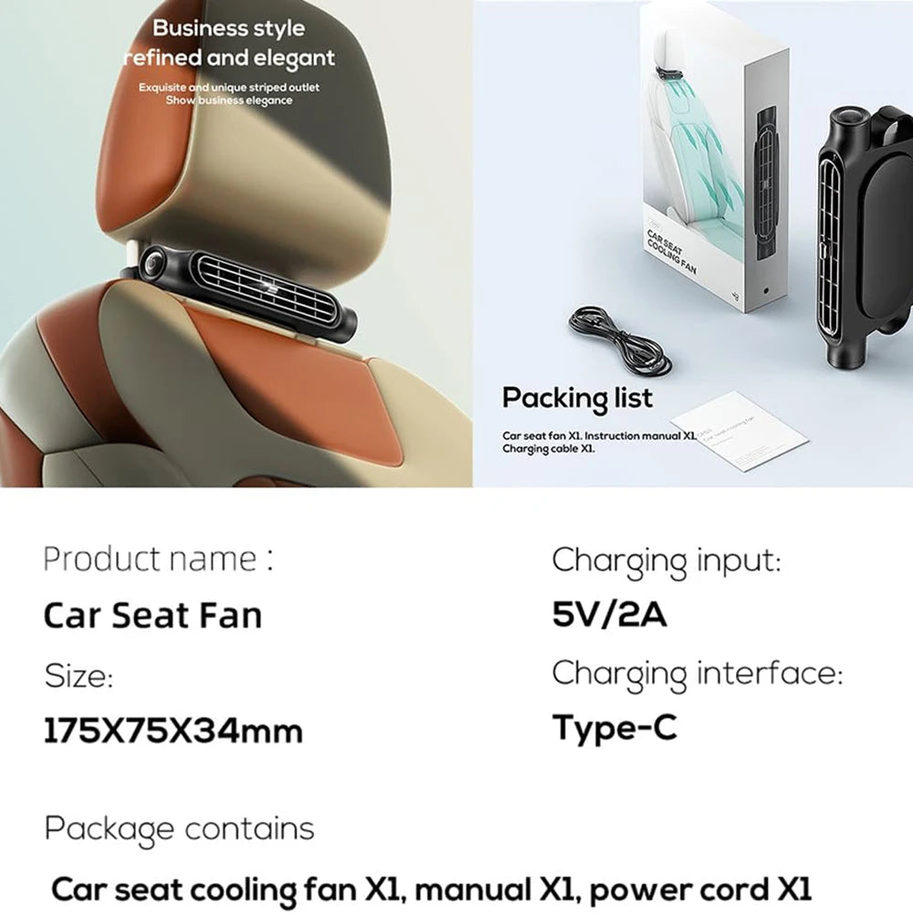 Electric Car Fans for Rear Seat Passenger Portable Fan Headrest Backseat Car Fan 1.5M Type-c Charge 5V 2A Fan with Three Speed Regulation for SUV, RV, Vehicles