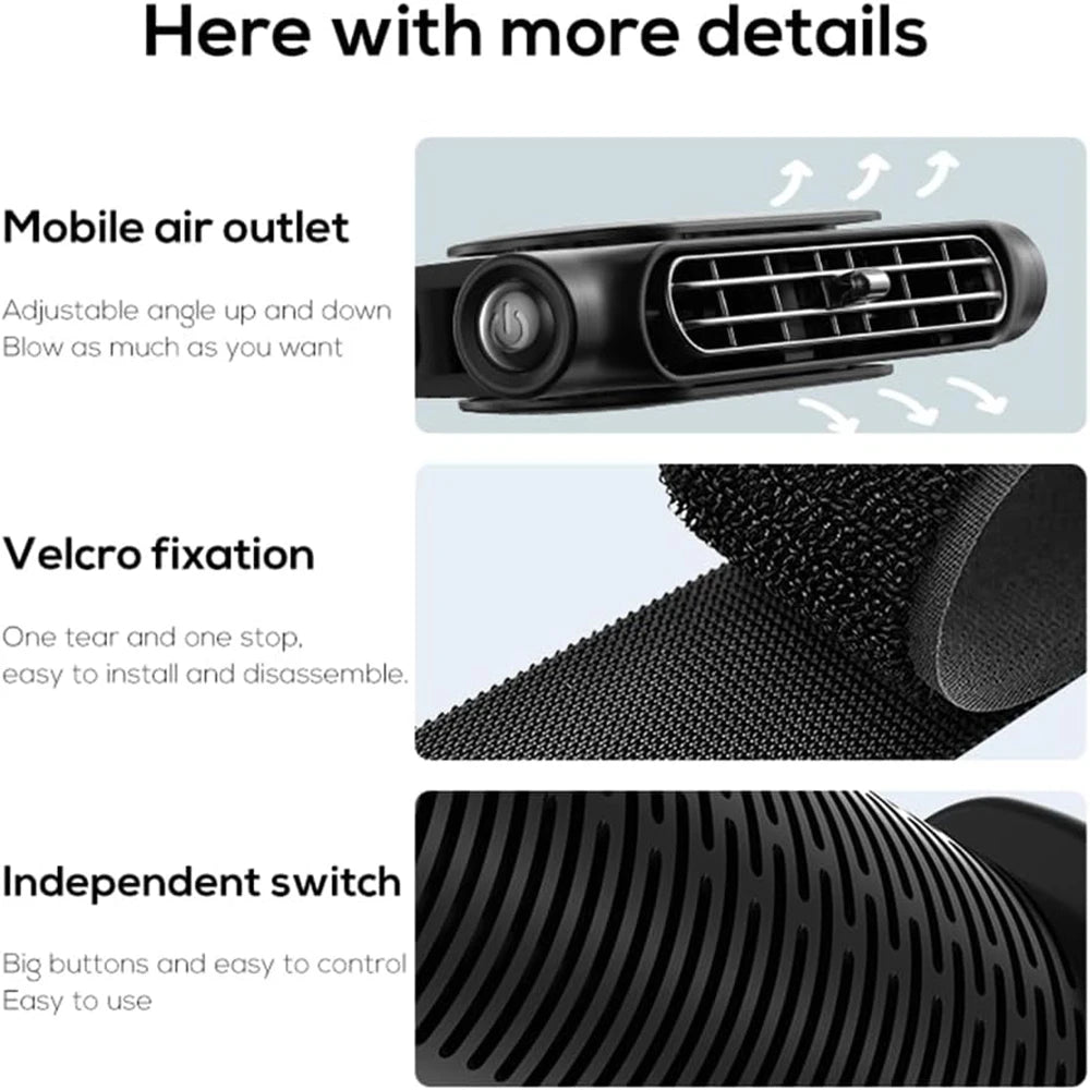 COMPATIBILITY: car fans fit all mini small compact or medium large full size sedans SUV Van Truck RV ATV. car cooling fan is easy to use. Just plug into 5V 1.5M Type-c Charge socket and use. You need to open the velcro fixation when you install or remove the car fan from the grip. The installment can be done easily by hand without any extra tools.