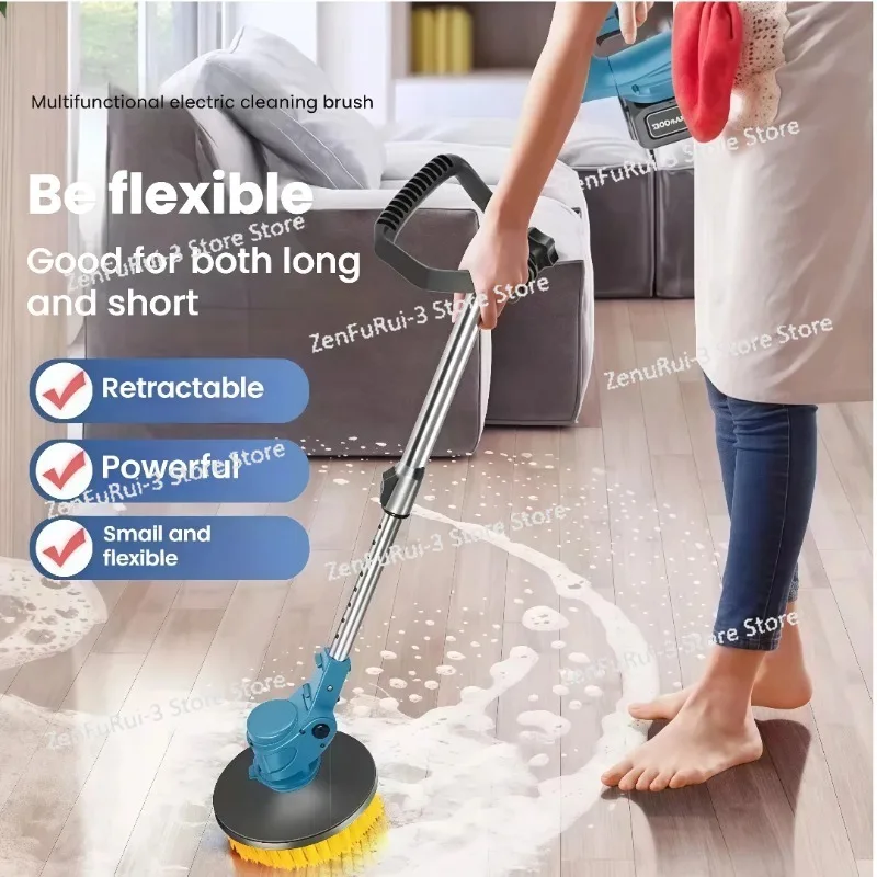Electric Cleaning Brush Bathroom Yard Sweeper Polishing and Polishing Snow Sweeping Leaf Six-in-one Retractable Cleaning Brush