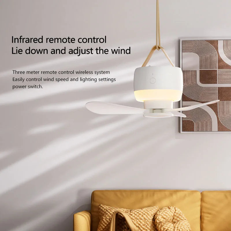 Electric fan Outdoor camping Small ceiling fan dormitory small fan USB charging Remote control Atmosphere lights ceiling fan