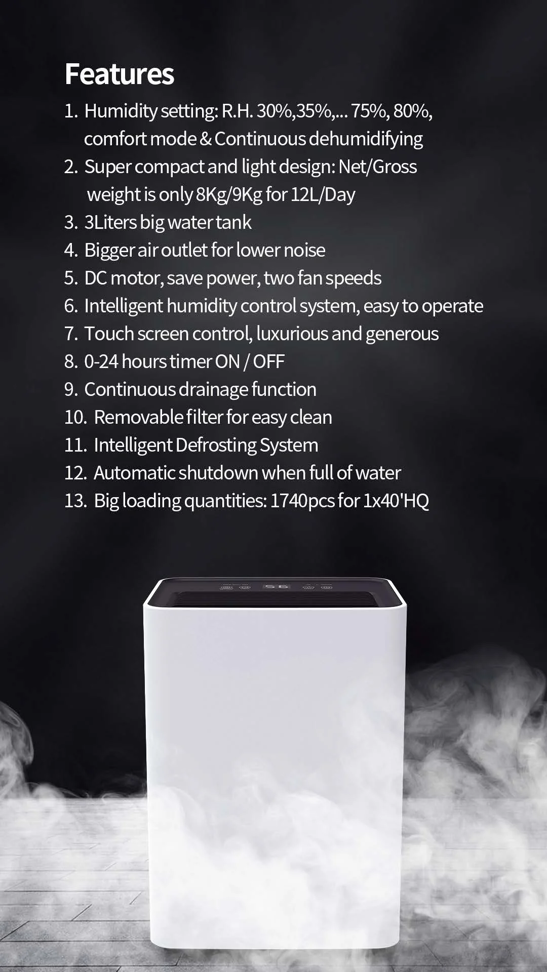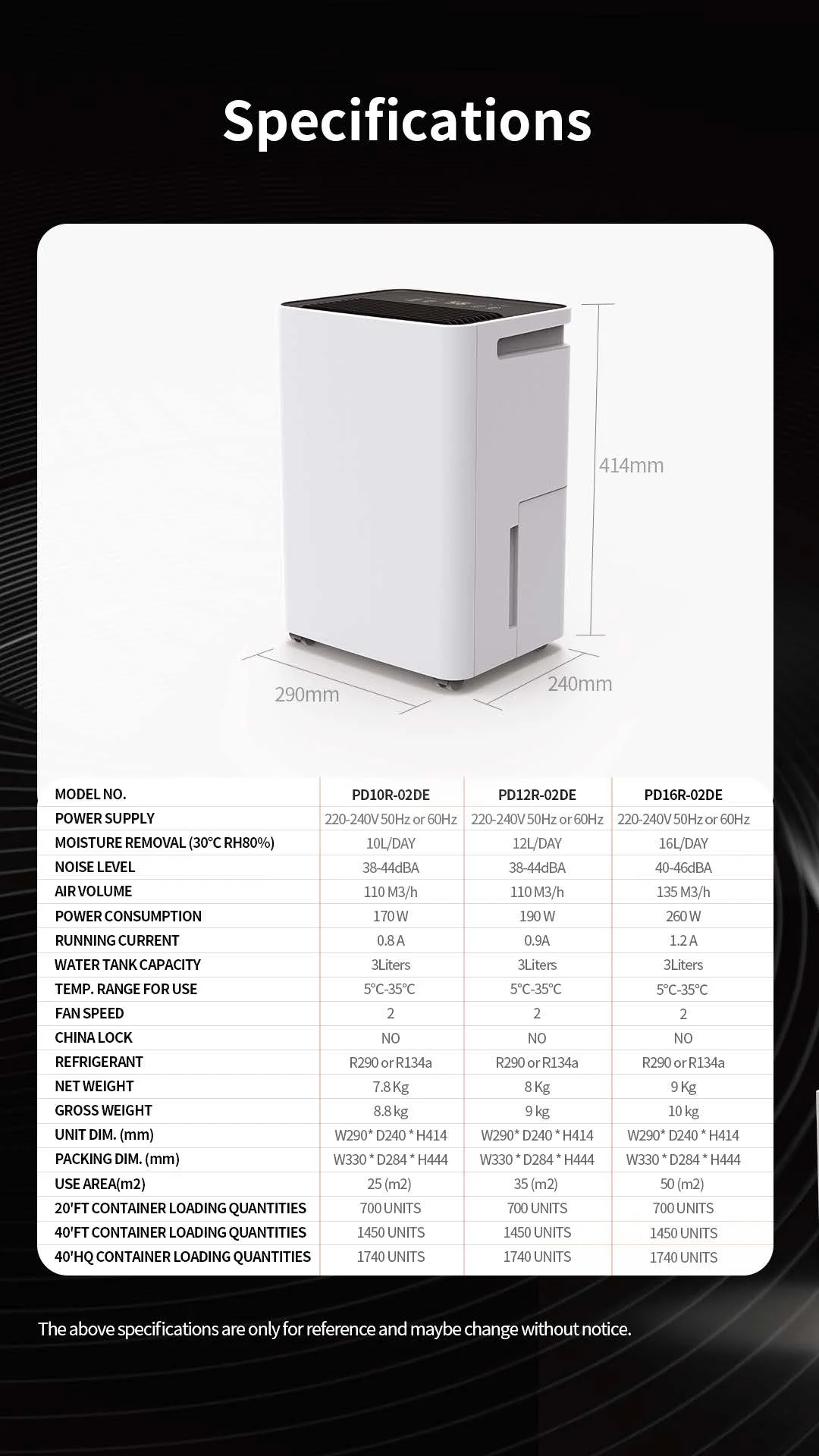 Moisture Removal Capacity: 10L/day under 30°C RH80%