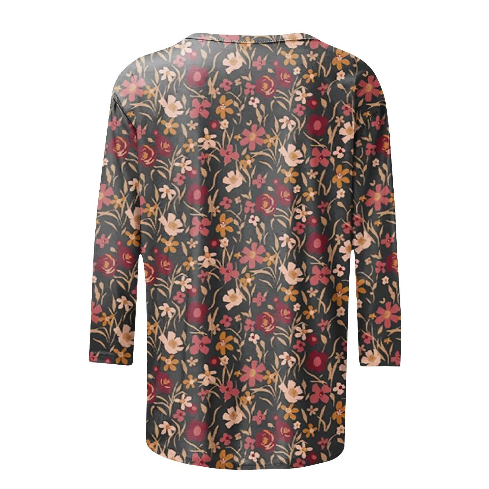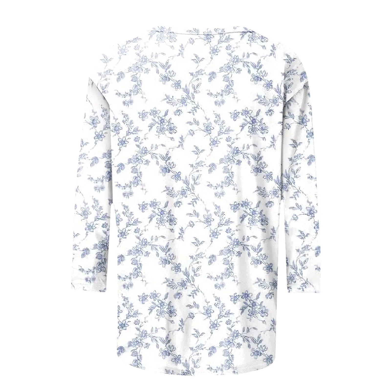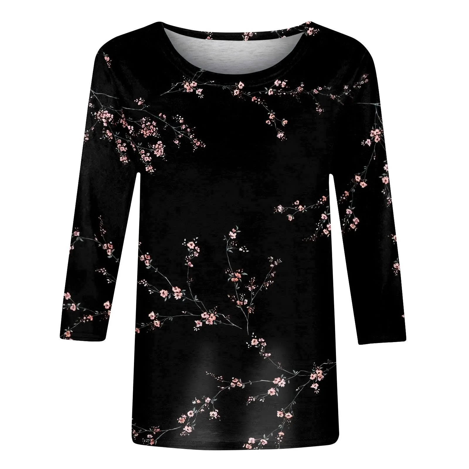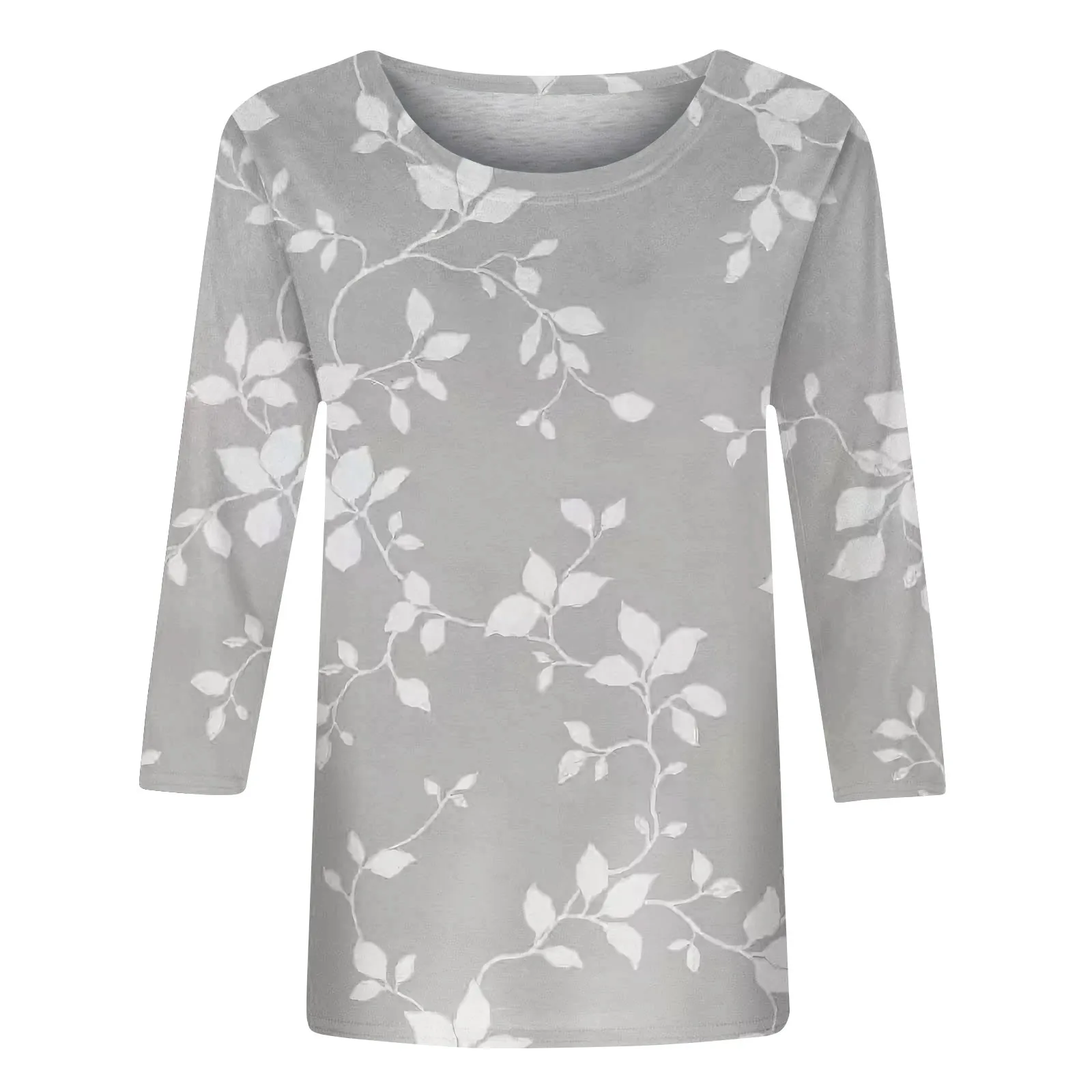 Female Clothing Delicate Fashion Shirts Floral Round Neck 3/4 Sleeves Printed Summer Women Pullover Daily Wear Vetement Femme