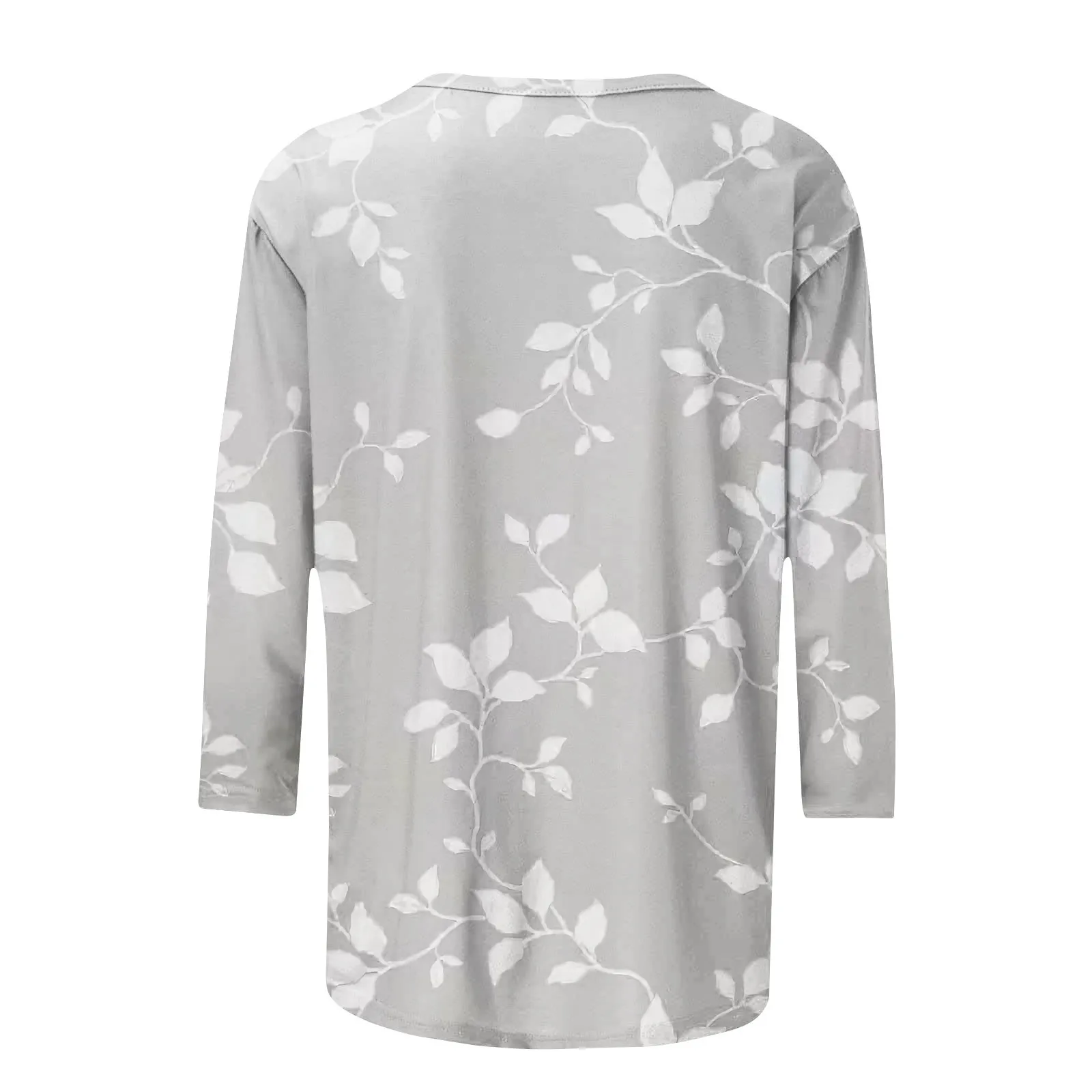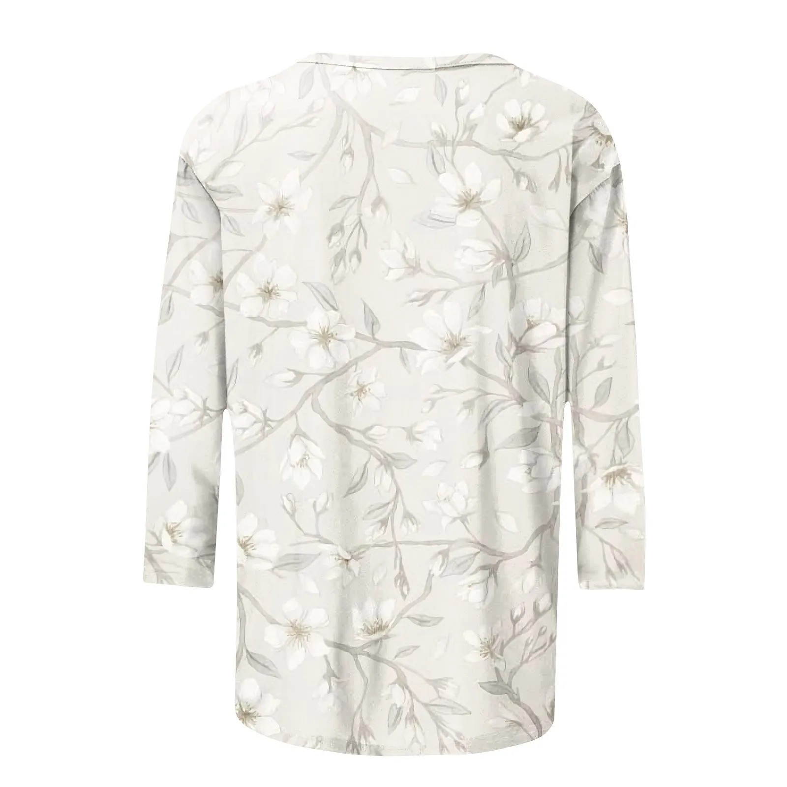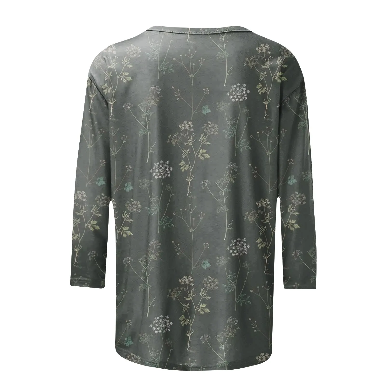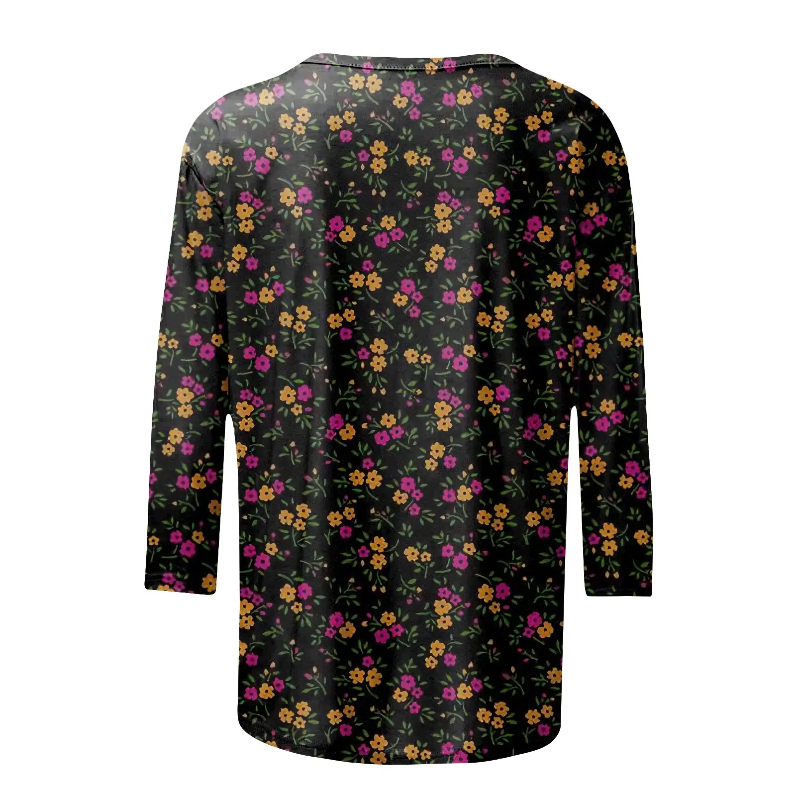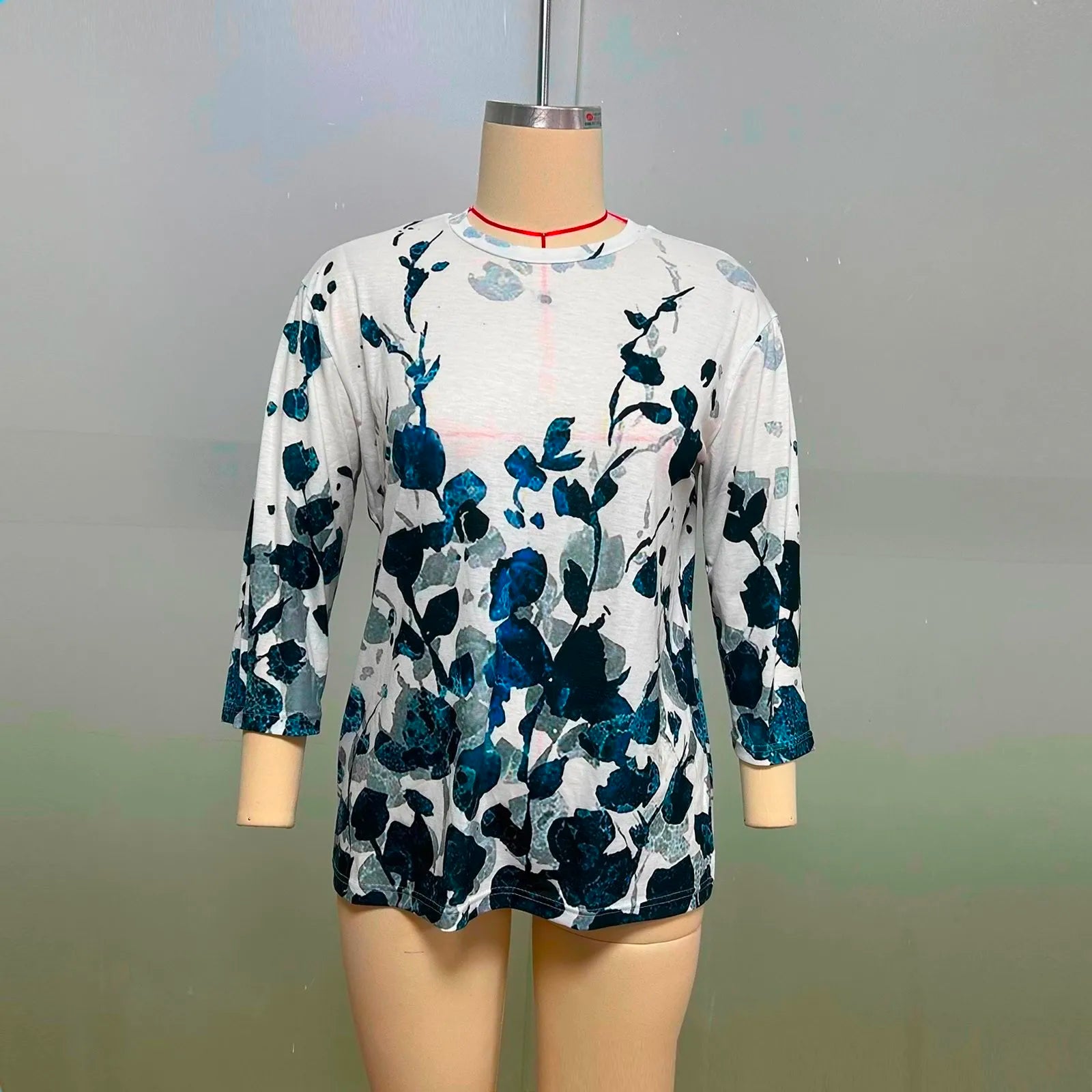 Female Clothing Delicate Fashion Shirts Floral Round Neck 3/4 Sleeves Printed Summer Women Pullover Daily Wear Vetement Femme