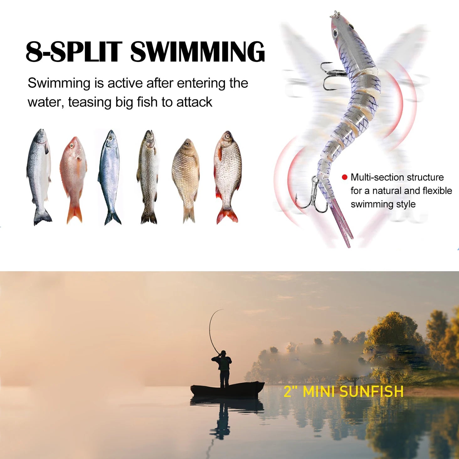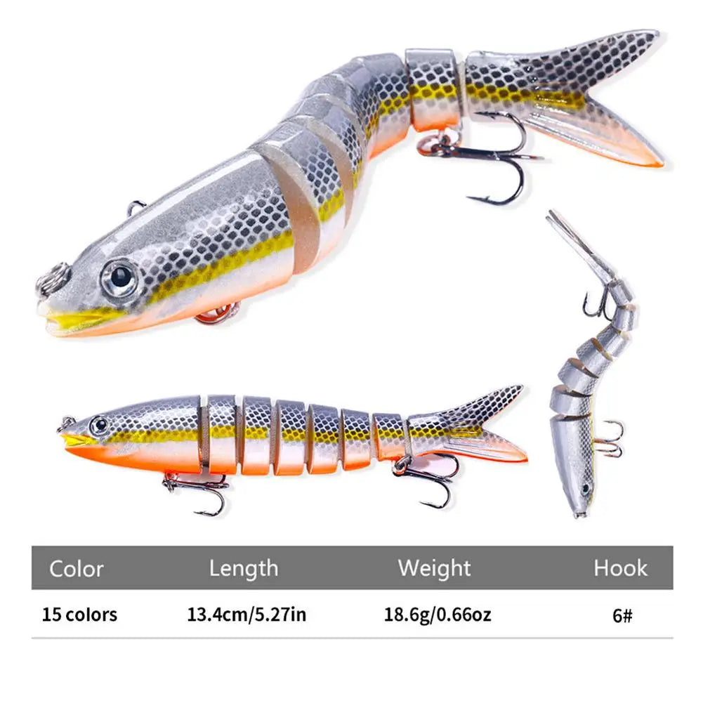 1.Lifelike Design: This multi-sectioned fishing lure features a realistic and lifelike design that mimics the appearance and movement of a real fish. It is specially crafted to attract a wide range of predatory fish species.