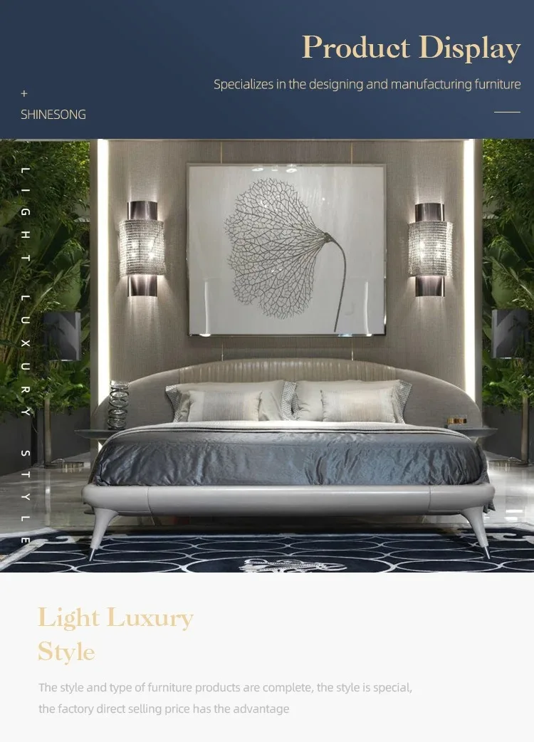 Hotel queen size leather bed frame wooden bed nappa genuine leather headboard king size bed