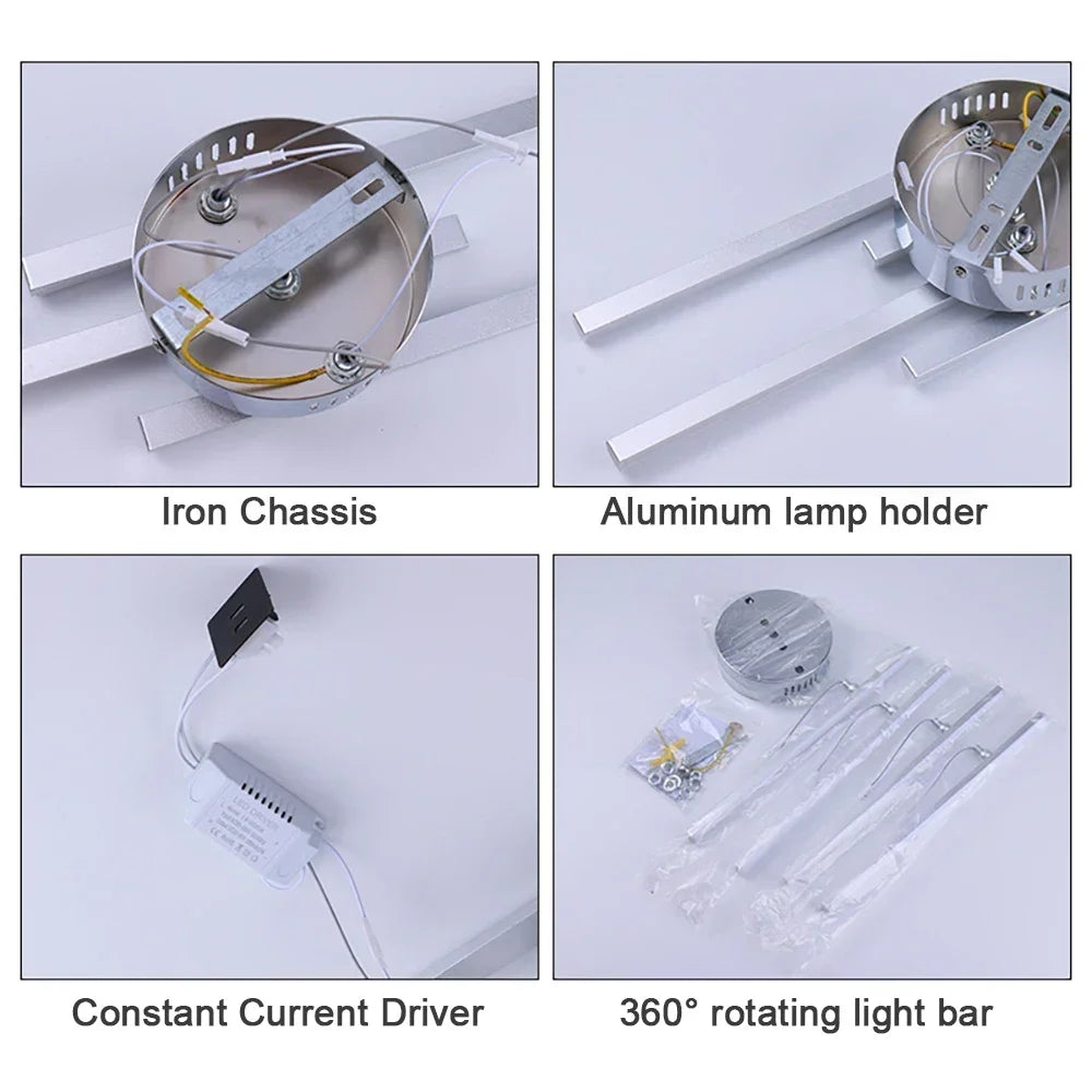 Indoor Home Decor Lighting LED Ceiling Lights 12W 18W 24W 2 3 4 Light Bars Curved Design LED Ceiling Lamp AC85-265V Living Room