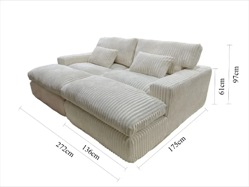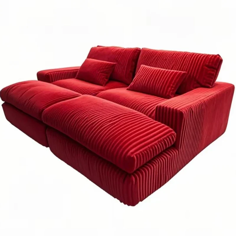 Italian Style Retro Luxury Corduroy Double Sofa Bed for Living Room Vacuum Compression Washable Customizable Furniture Sofa