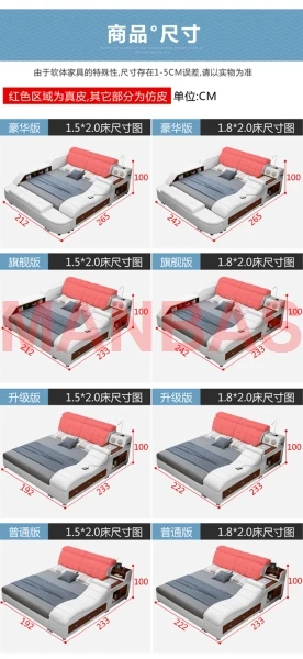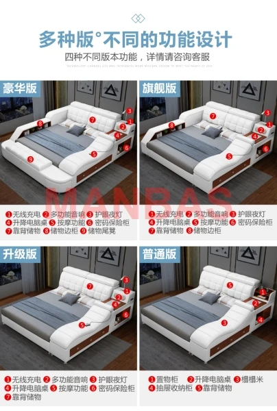 King/Queen Size Multifunctional Bed Tech Smart Beds Ultimate Camas TATAMI Massage Lit Genuine Leather Upholstered Bed with Audio
