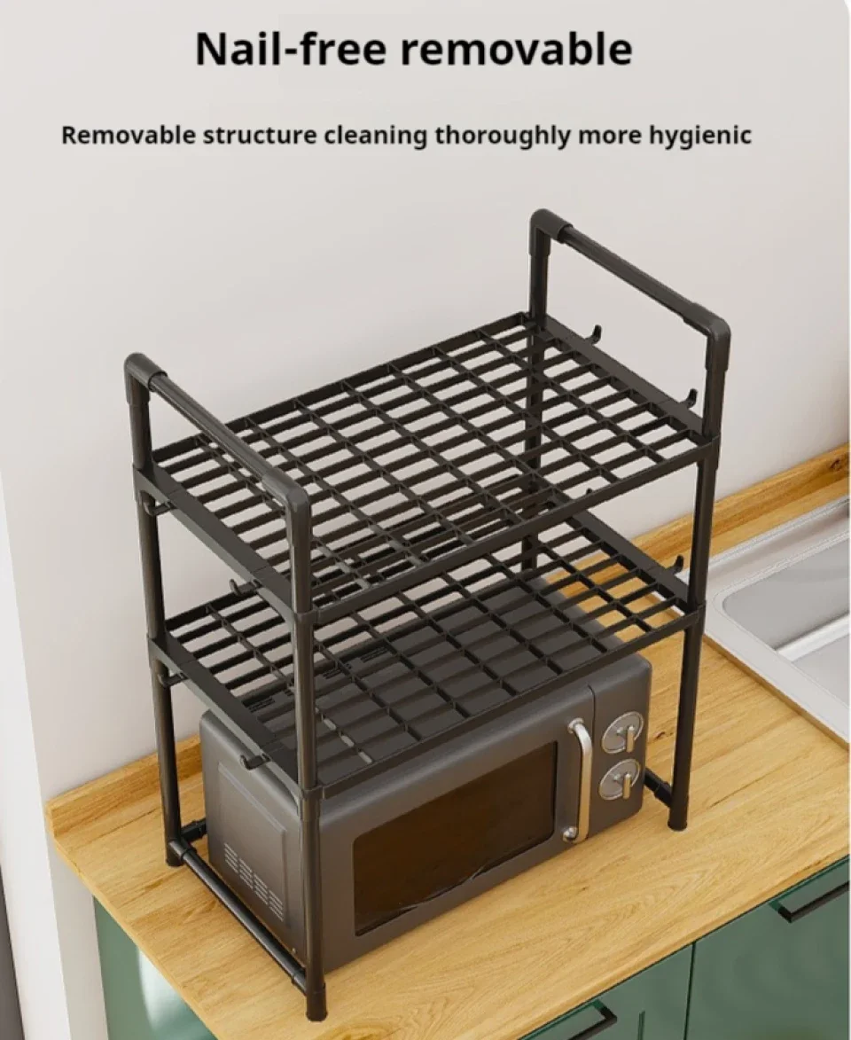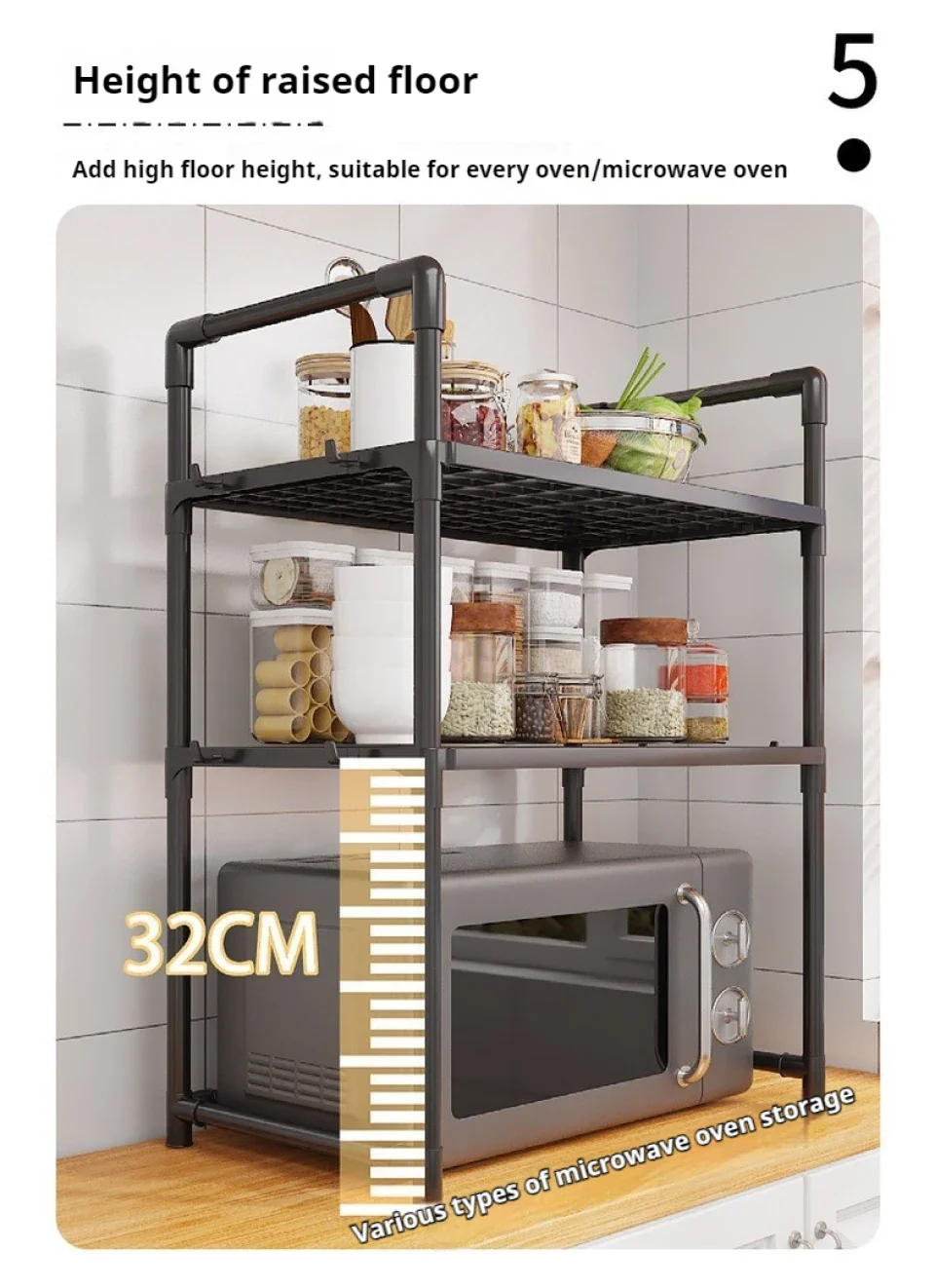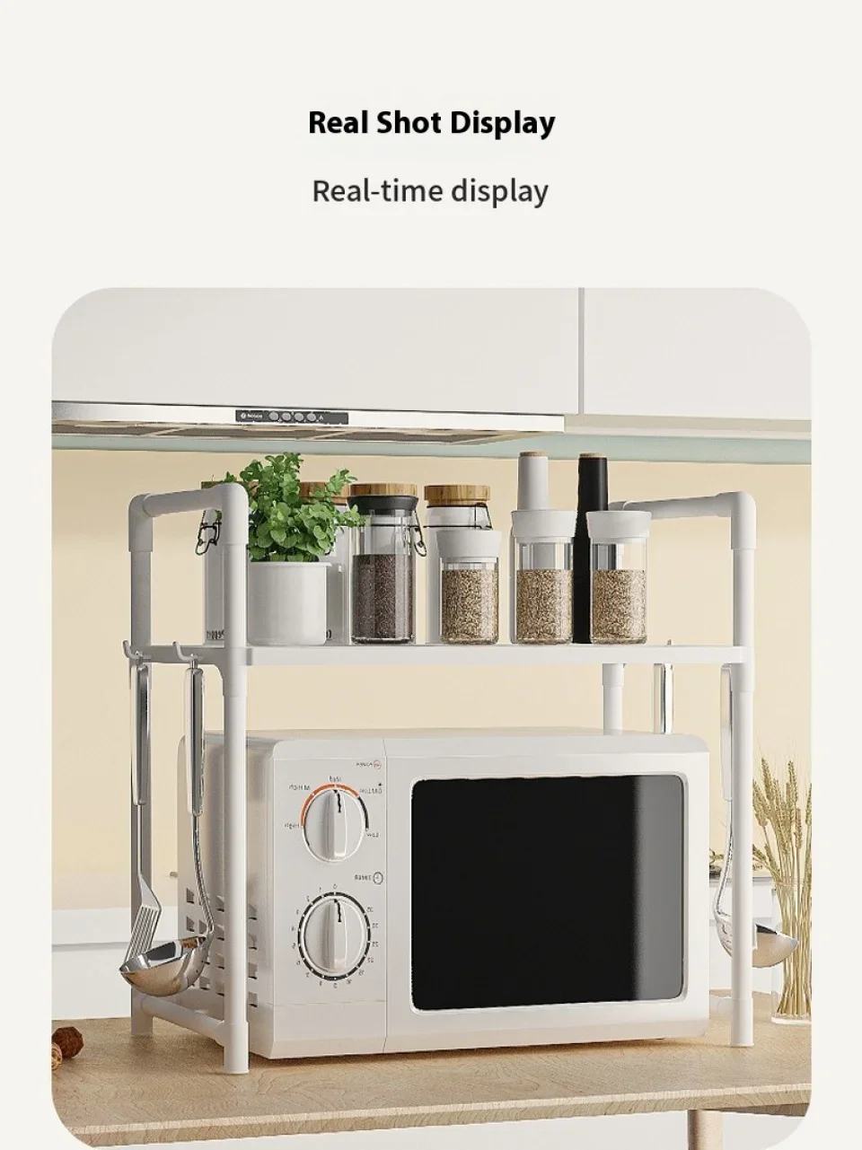 Kitchen Microwave Storage Rack Bilayer Oven Elevated Design Shelves Multi-Layer Condiment Organizer Shelf Kitchen Accessories
