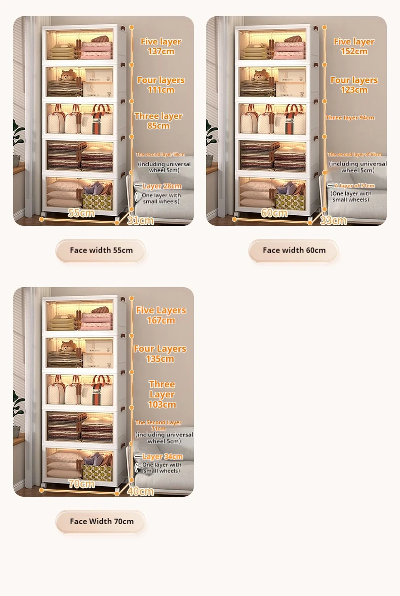 Large Volume Multifunction Folding Living Room Cabinet Closet Organizer With Wheel Stackable Sundries Large Capacity Storage Box