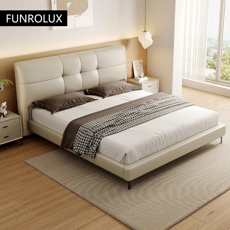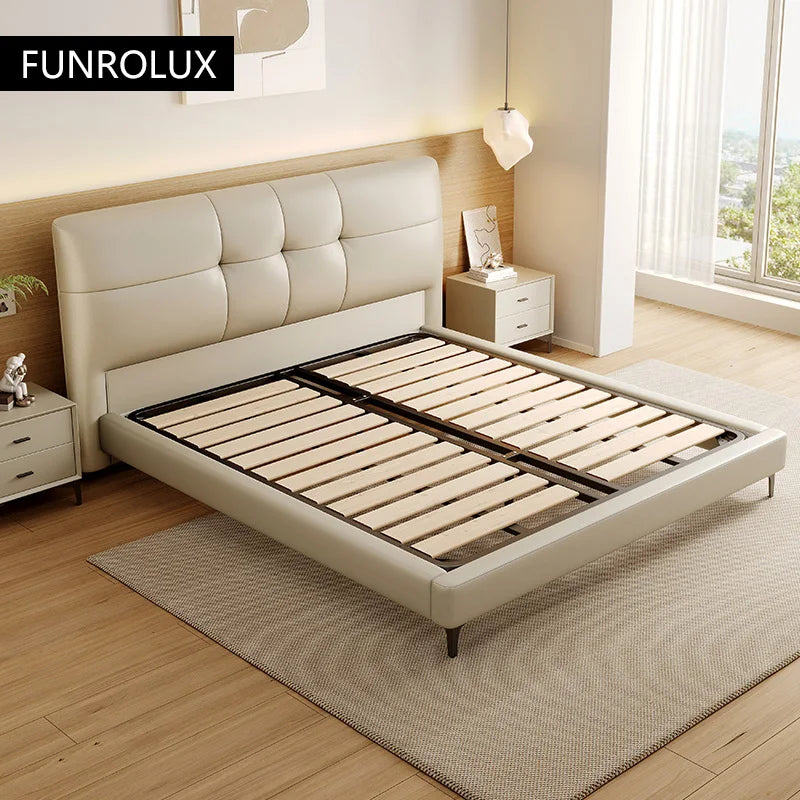 Light Luxury Leather Bed Modern Simple Master Bedroom Wedding Bed Net Red 1.8 Meters King Size French Double Bed