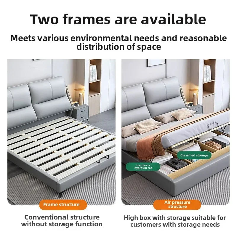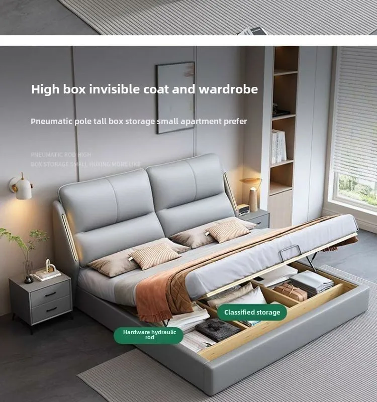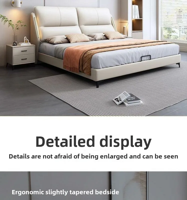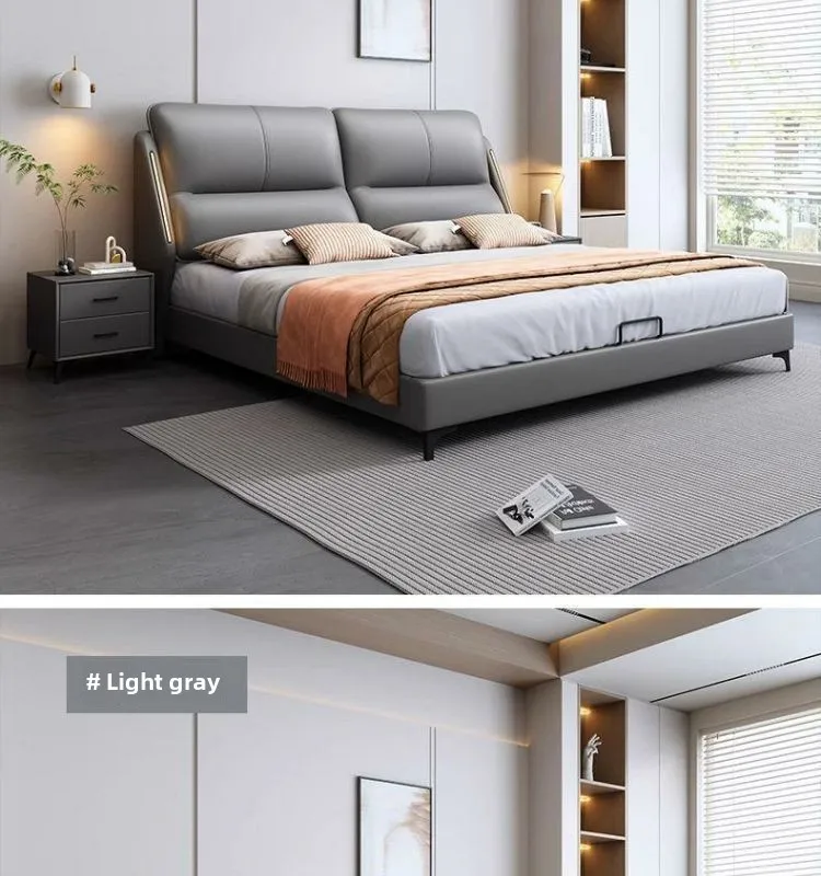 Light luxury soft leather bed with induction light strip Modern simple new master bedroom High-end atmosphere Minimalist leave-i