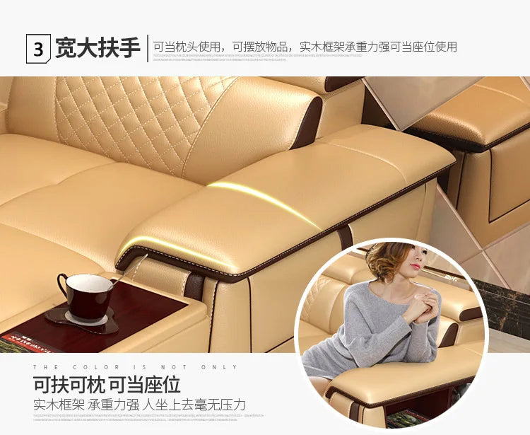 Living Room Sofa set furniture real genuine cow leather sofa recliner speaker bluetooth puff asiento muebles de sala canape cama