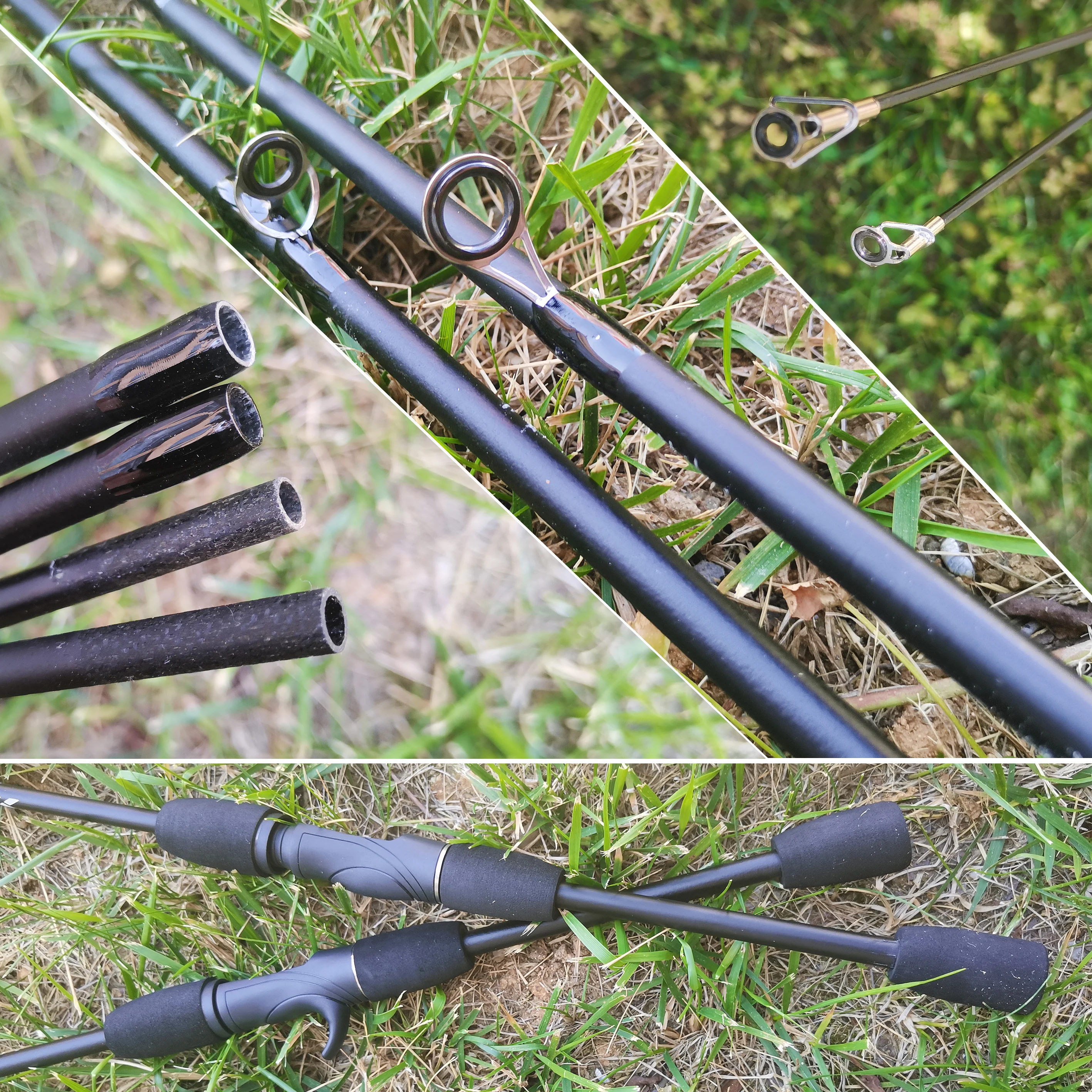 Lure rod for beginners fishing rod 1.8m gun handle and straight handle options carbon fiber material light weight high strength strong and durable segmented handle black appearance ceramic guide ring design suitable for fishing in various outdoor waters holiday gift of choice cheap price grids