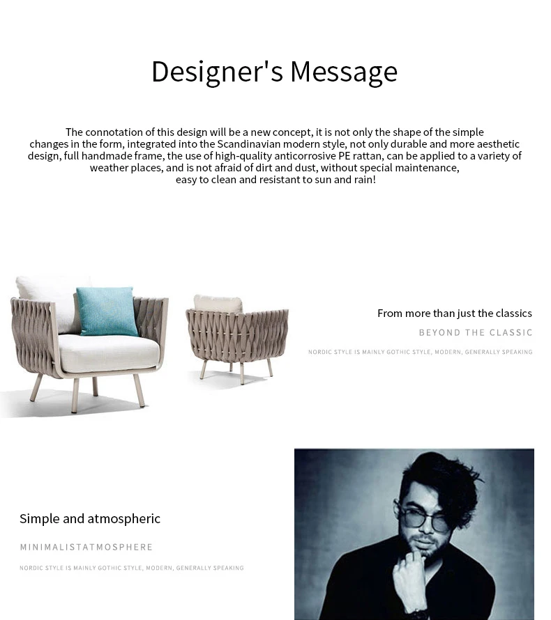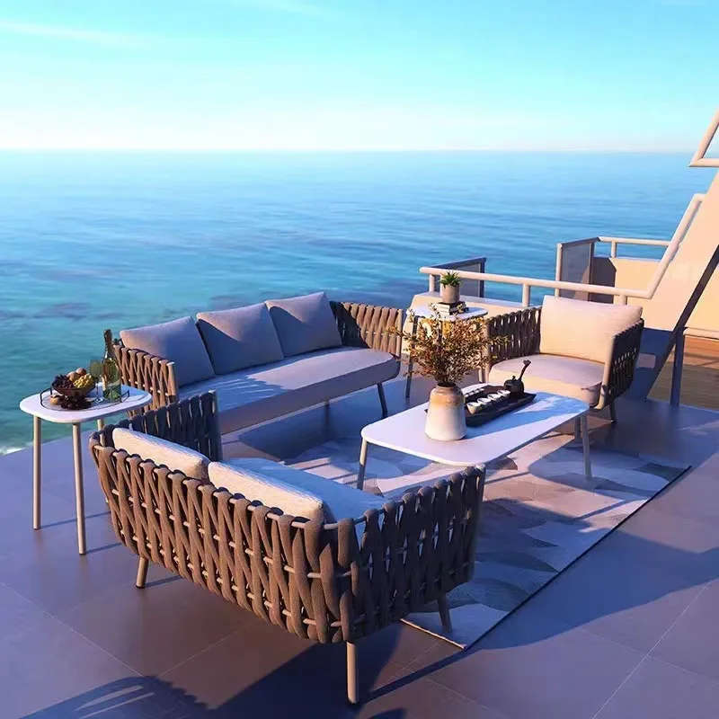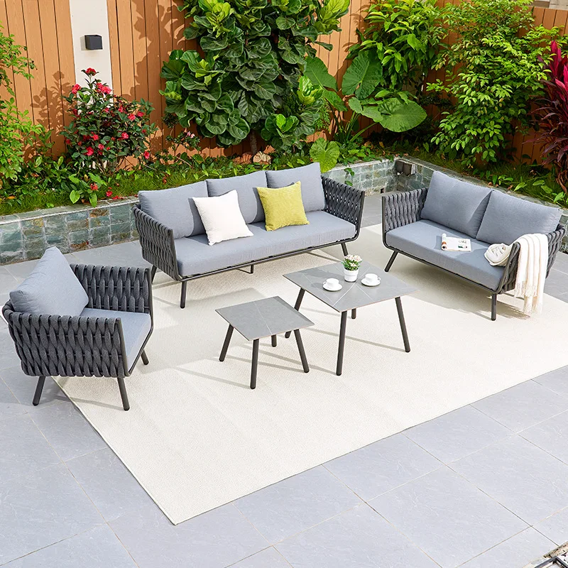 Lving Room Modern Sofa Set Furniture All Weather Outdoor Lazy Fabric Sofa Rattan Garden Sofas for Patio