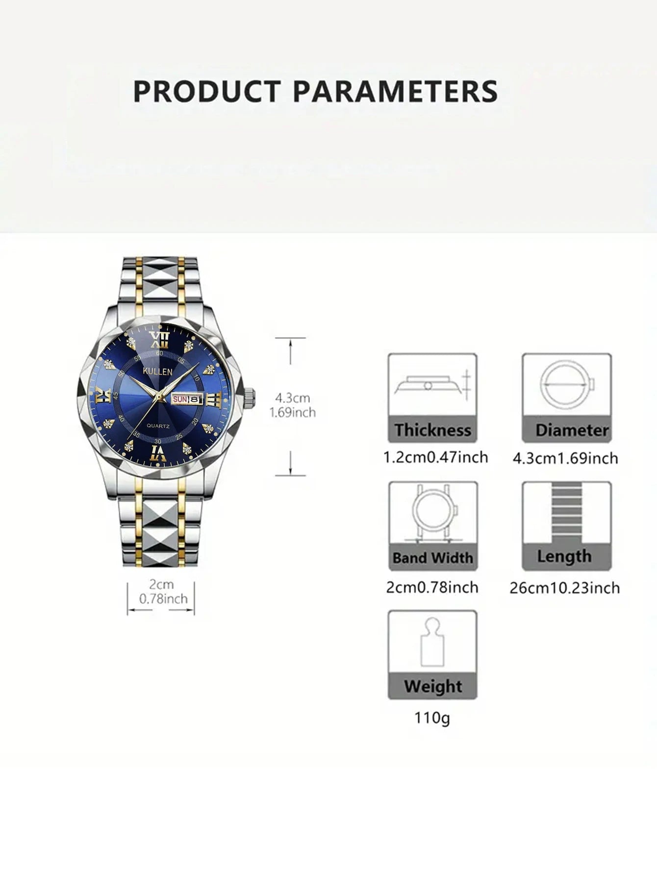 Male Mens Quartz Watches Top Brand Luxury Business Waterproof Luminous Large Dial Men Wristwatches Sports Stainless Steel Watch
