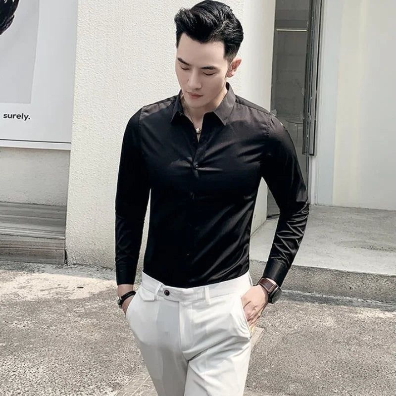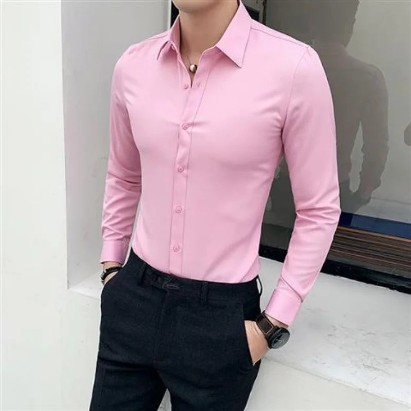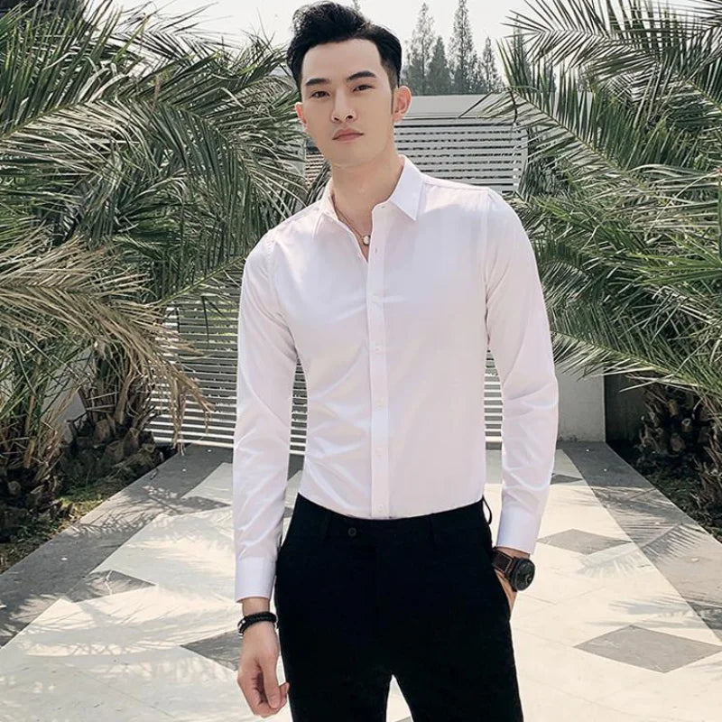 Man Tops Business Red Formal Plain Shirts and Blouses for Men Long Sleeve High Quality Luxury Designer Vintage Cotton Clothing S