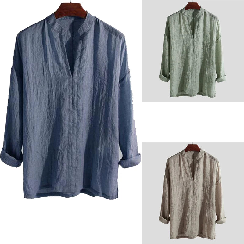 Men Casual Social Shirts Cotton Linen Shirt Long Sleeve Formal Shirt Blouses Soild Normal Shirt Fashion Shirt Tops Male Clothing