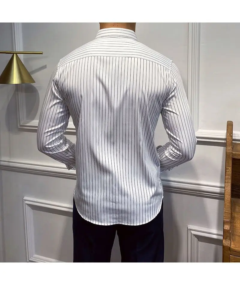 Men's Clothing Fashion British Style Striped Business Casual All Match Shirt Long Sleeve Slim No Ironing Tops Camisas De Hombre