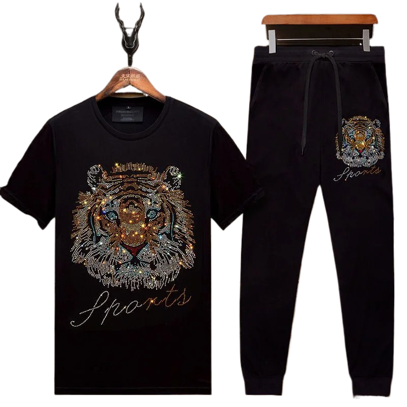 Men's Clothing Summer high quality Casual Sports suit Short-sleeved Trousers Gold Stamping Ice Silk Two-piece Set