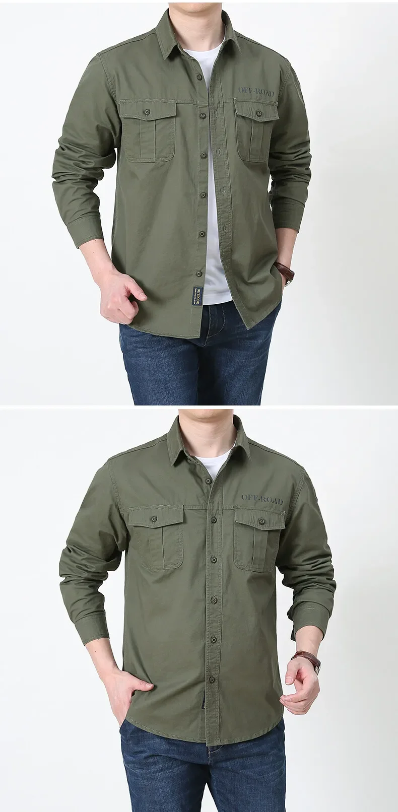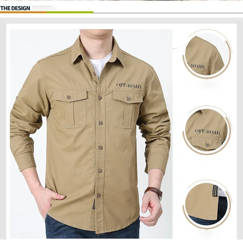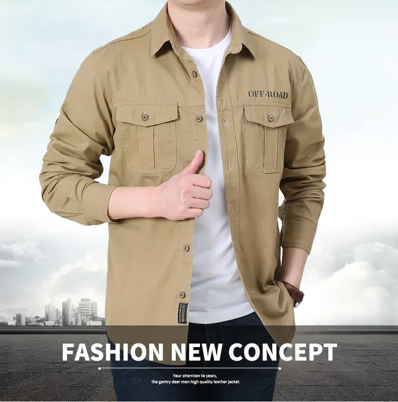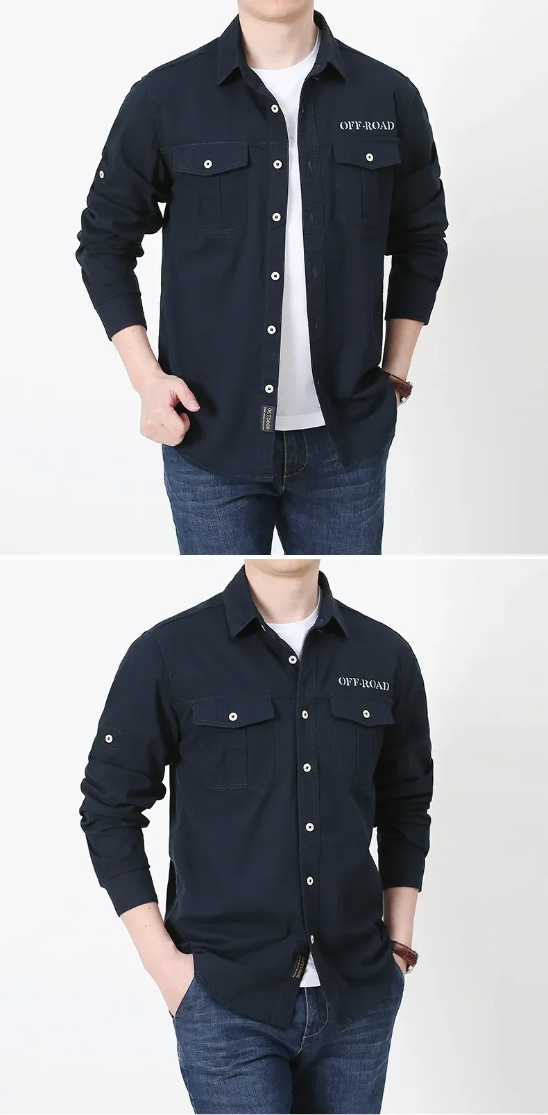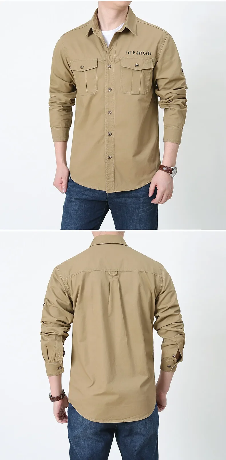 Men's Outdoor Work Clothes Multi-bag Long-sleeved Tops Pure Cotton Washed Shirts Spring and Summer Men's Long-sleeved Shirts