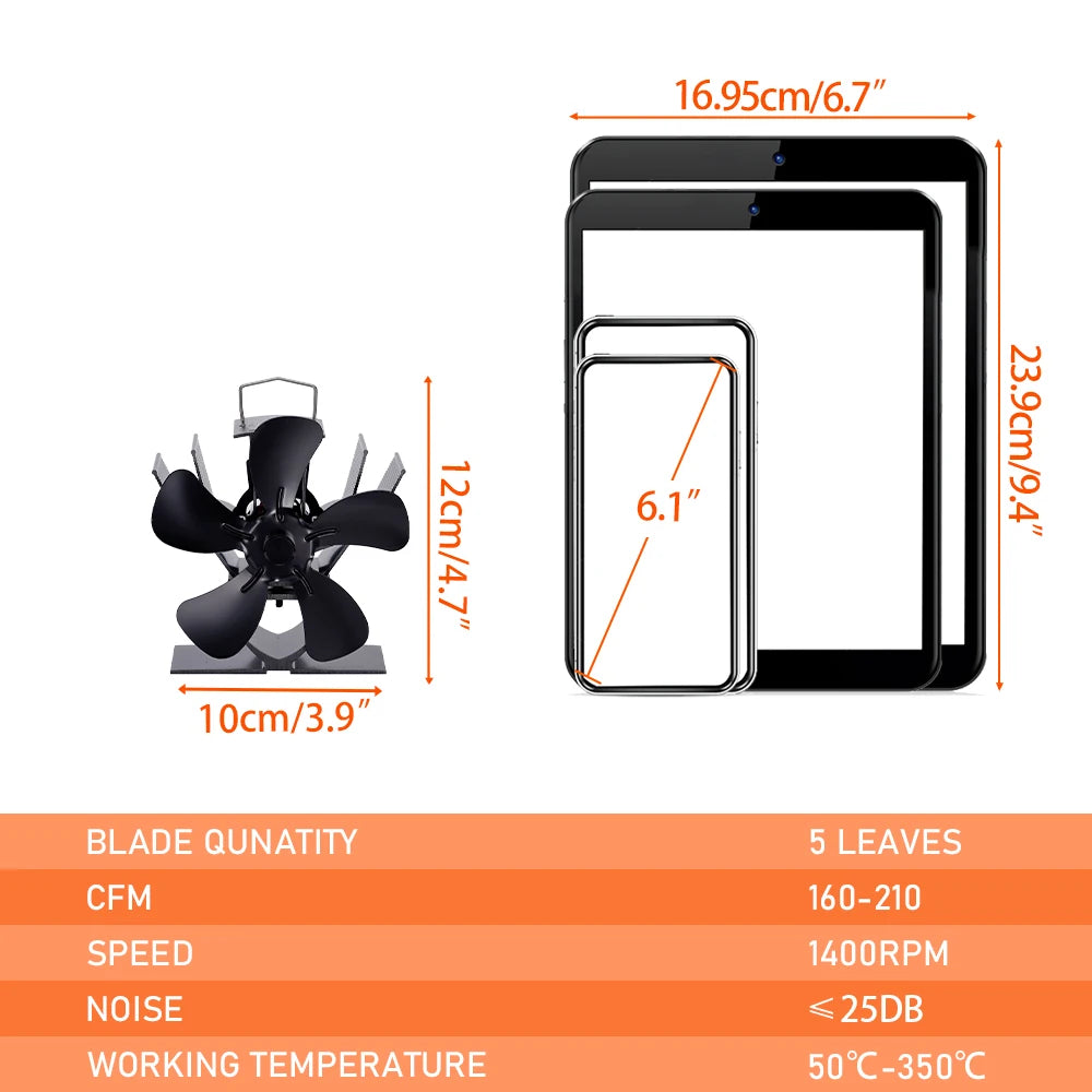 Mini Fireplace fan 5-blade thermoelectric stove fan Log burner Eco-fan Quiet Fireplace fan heater Efficient heat distribution