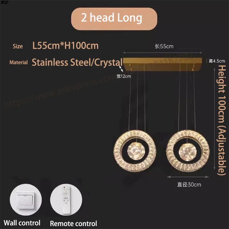 Modern Home DecorLED Lights Crystal Pendant Lamps Room Chandeliers Dining Table Pendant Lights Indoor Lighting Dimmable Light