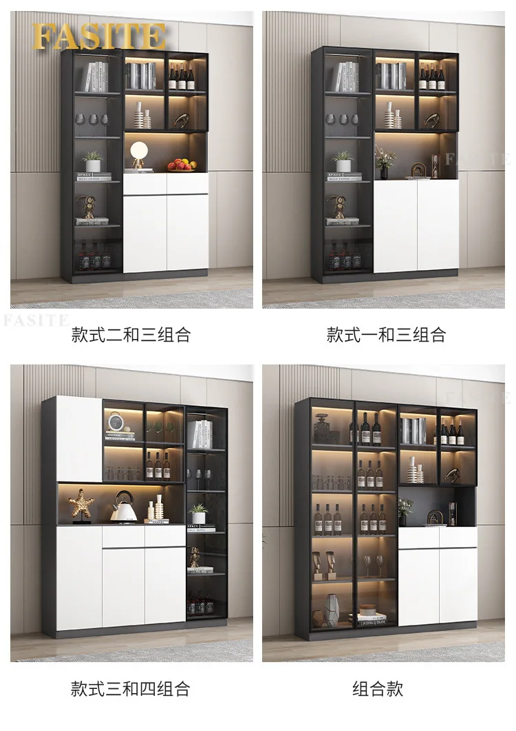 Modern simple light luxury living room storage cabinet Italian glass door wine cabinet dining room cabinet dining side