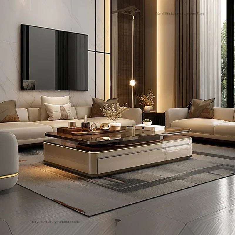 Modern Villa Living Room Low Coffee Tables Nordic Luxury Design Glass Coffee Tables Wooden Salon Home Furniture Salontafel FYCT