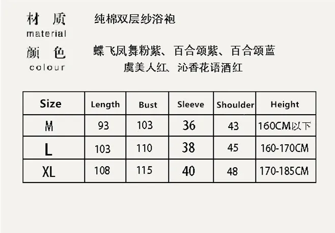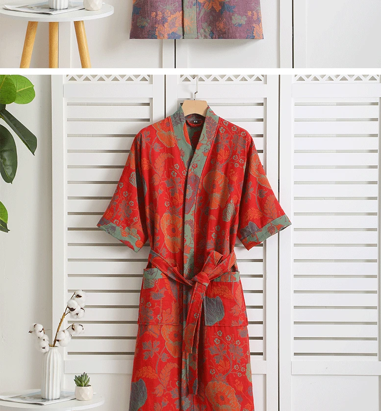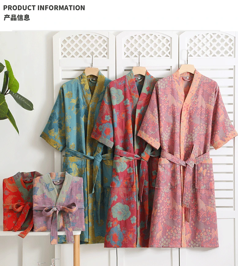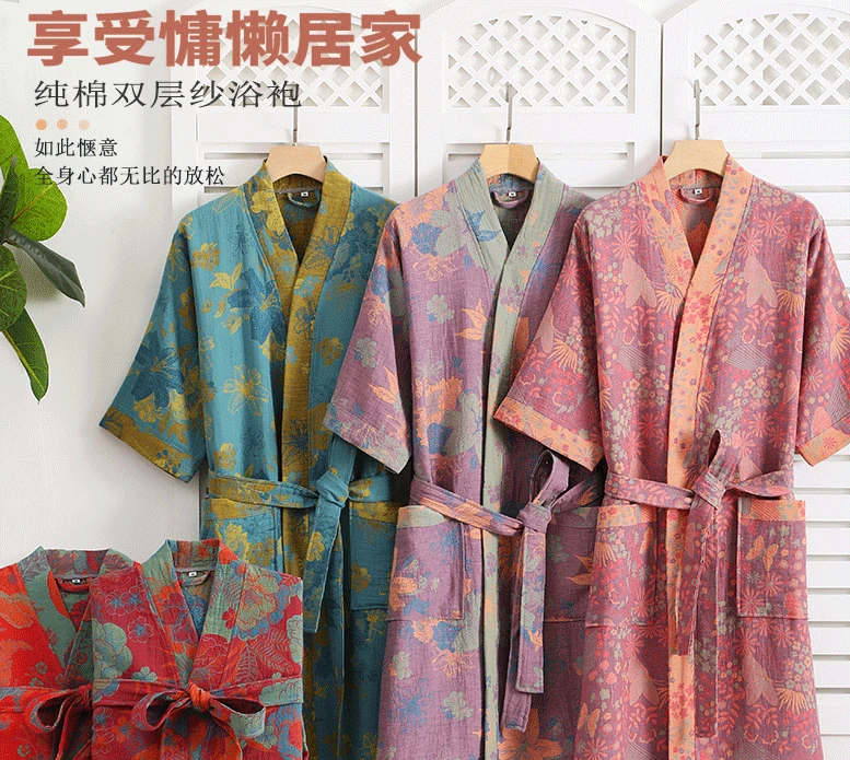 New 100% Cotton Lady's Bathroom Robe Printed Nightgown Style Pure Cotton Double-Layer Gauze Comfortable Dressing Gown for Women