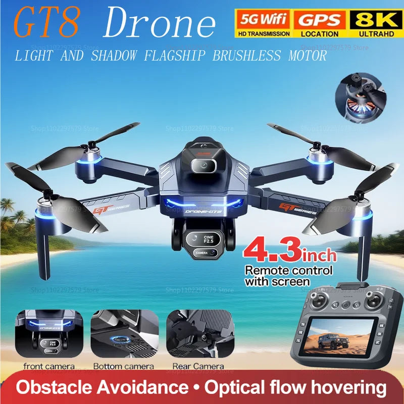 NEW Drones GT8 GPS 8K Professional HD 180° Dual Cameras 5G WIFI Brushless Motors Obstacle Avoidance FPV Foldable Quadcopter Toy