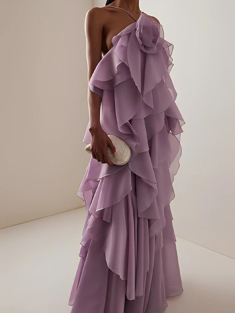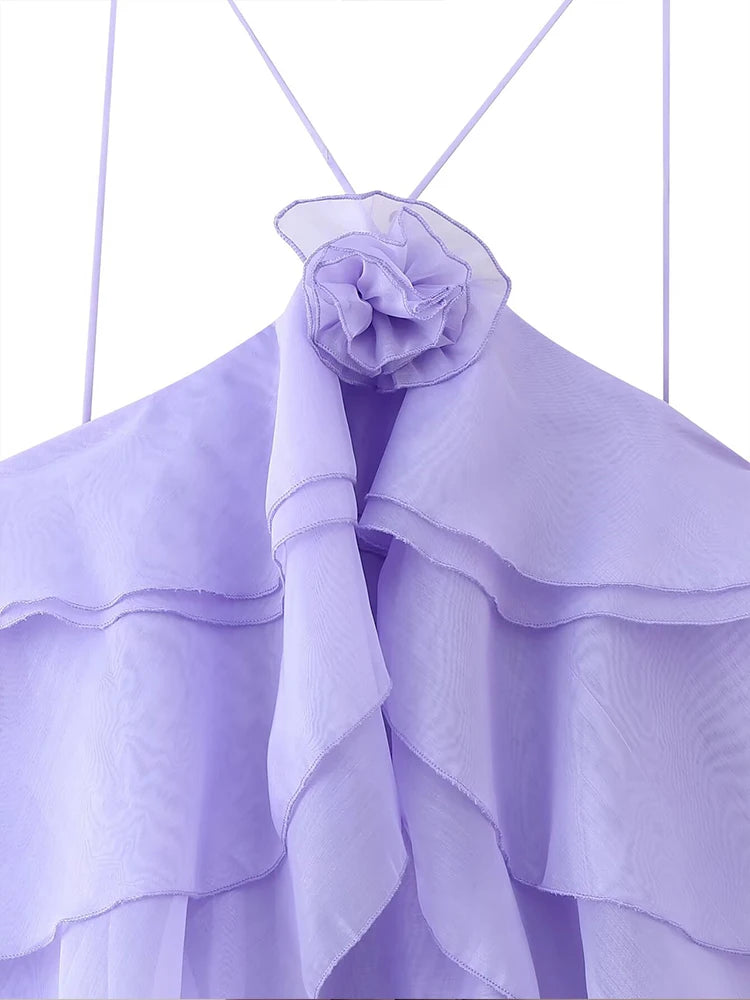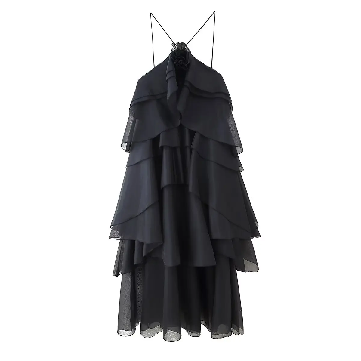 New Women's Clothing European and American Style Fashion Simple Casual Three-Dimensional Flower Layered Decorative Dress