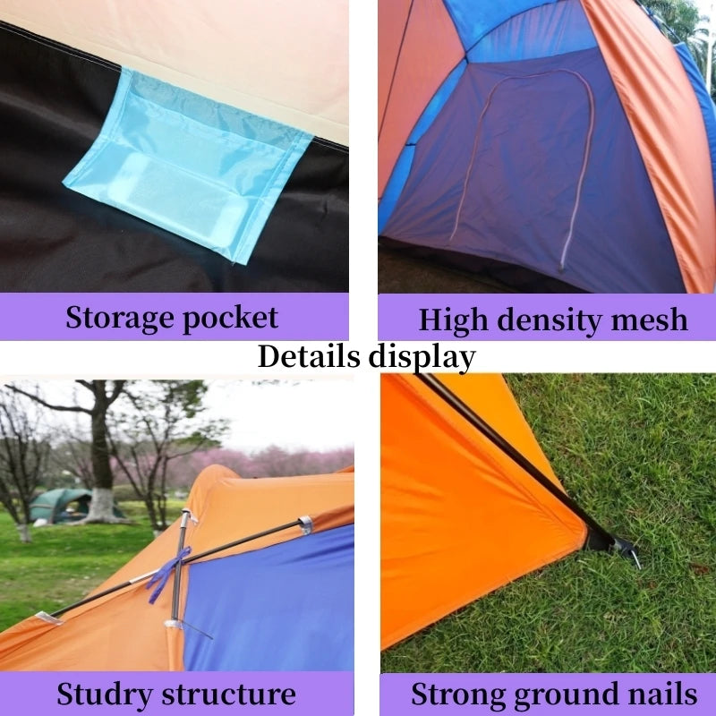 Ground tent: 210T waterproof Oxford Cloth tent - Super waterproof and Strong quality.