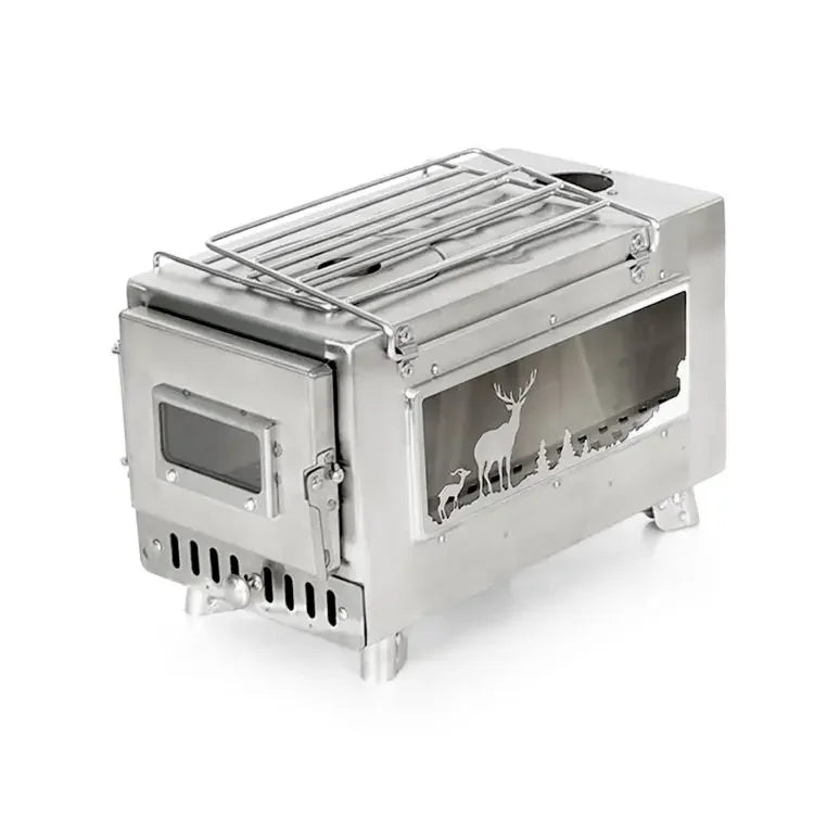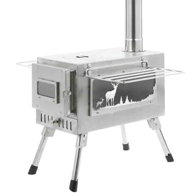 The outdoor camping tent wood stove is composed of stainless steel construction, ideal in harsh outdoor environments.